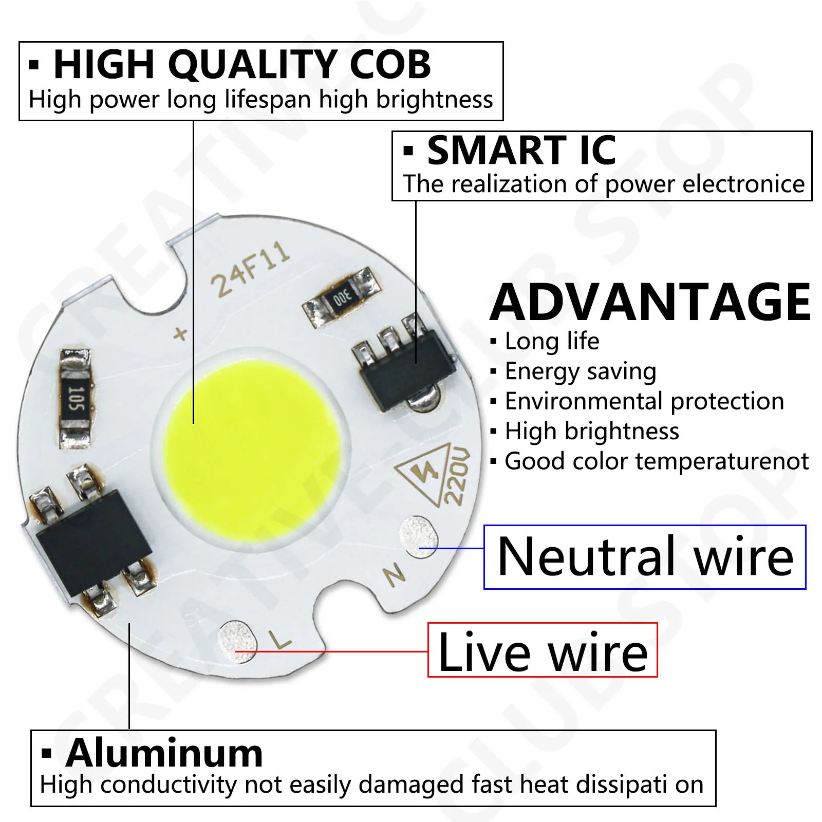 Champ d'application : places, jardins, parcs, terrains, extérieur, utilisé dans les ampoules de projecteur.Réparation et modification DIY.