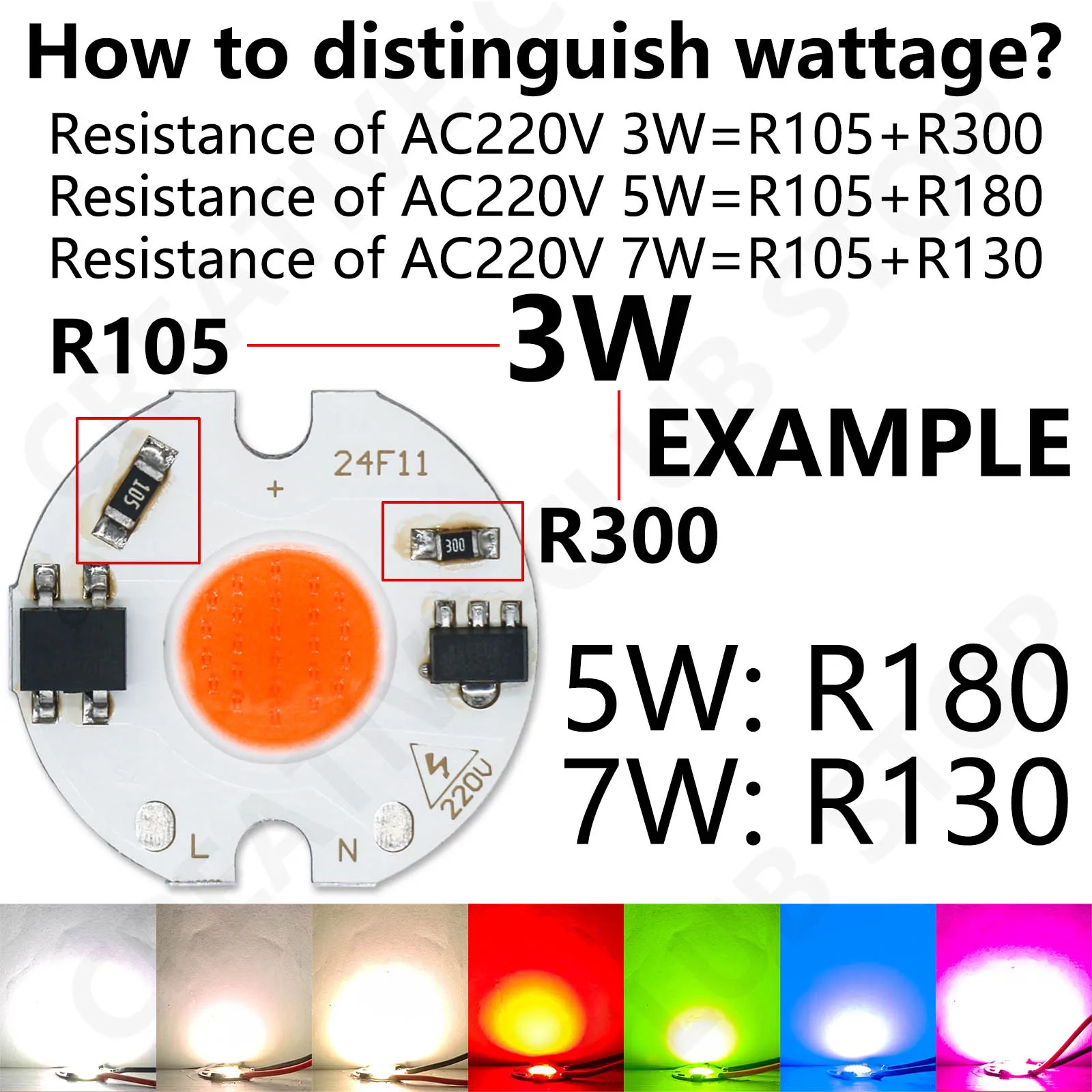 Puissance : 3 W/5 W/7 W