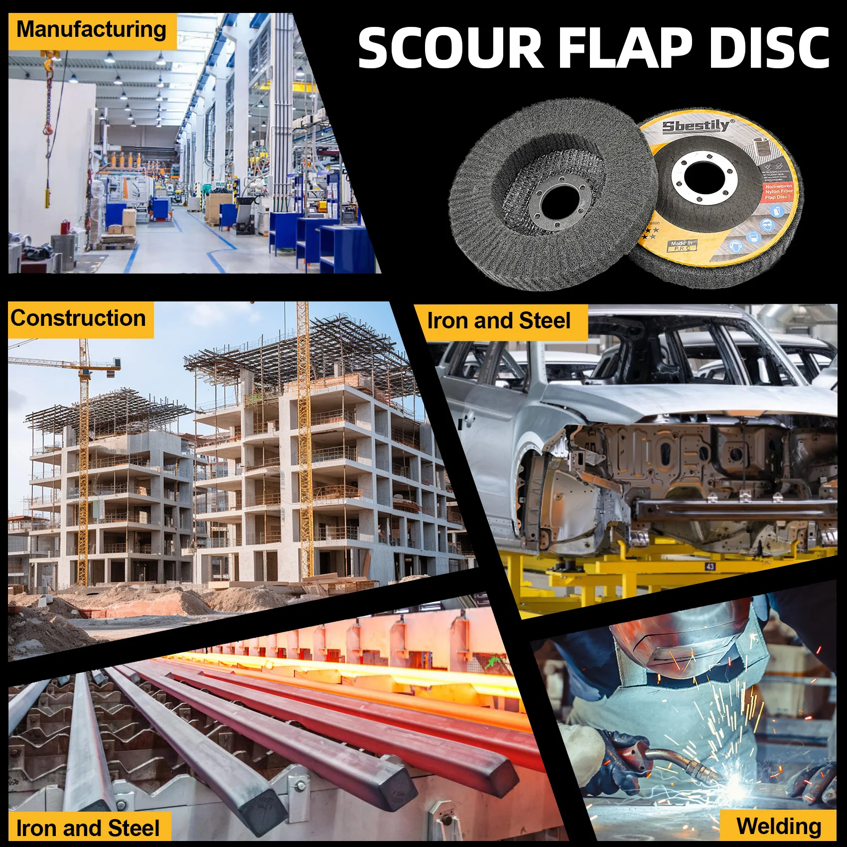 【Condition de la surface】 : le disque à rabat Sbestily Scour est composé de plus de 60 petits « tampons de gommage » carrés avec de petits morceaux de papier de verre au milieu pour éliminer la rouille, l'oxyde et la corrosion sans endommager la surface métallique, laissant une surface métallique lisse.