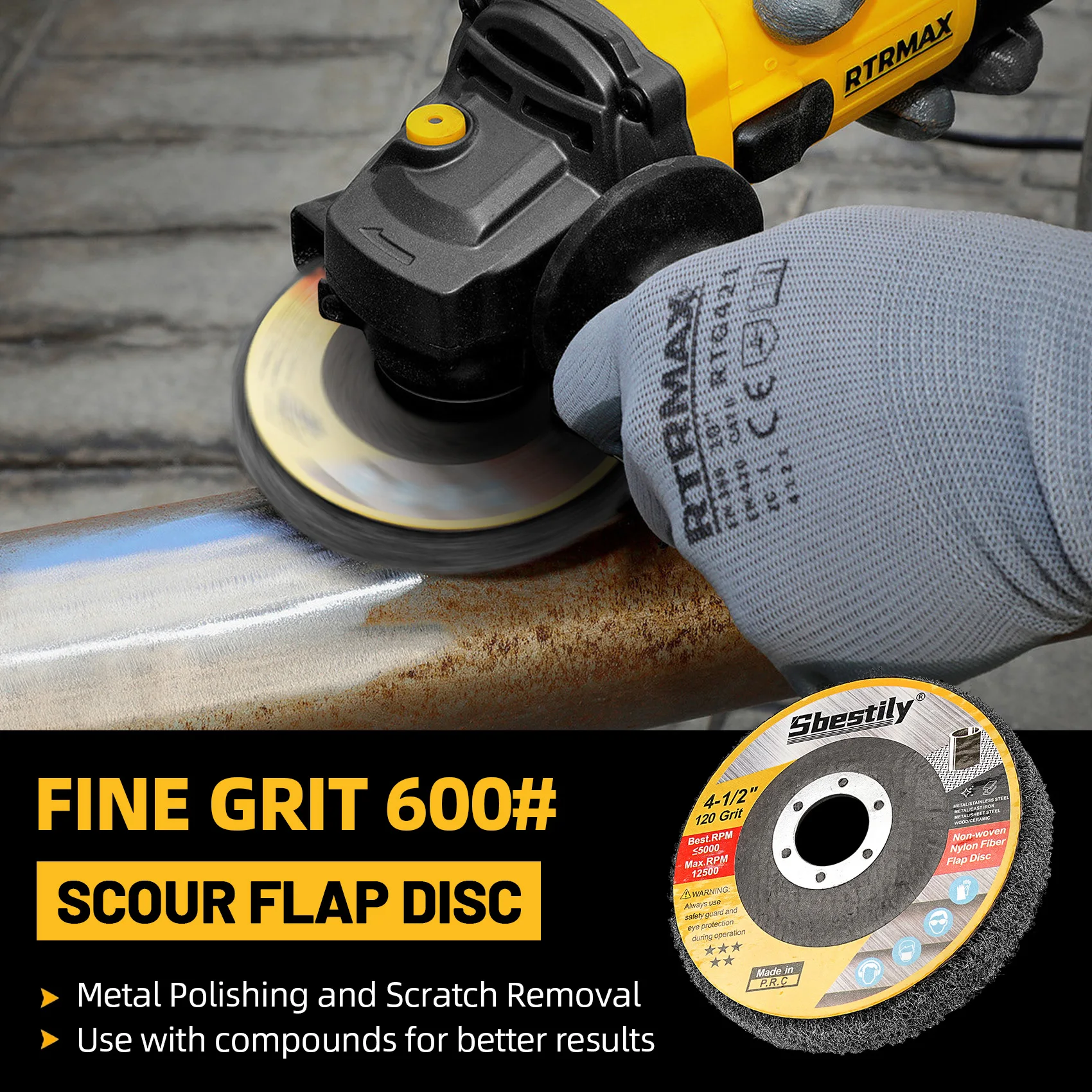 【Fixation pour meuleuse d'angle】 : excellents disques abrasifs de 4 1/2 pour meuleuses d'angle, utilisés à des vitesses plus basses pour une durée de vie plus longue, mieux utilisés à 5 000 tr/min et loin des arêtes vives.
