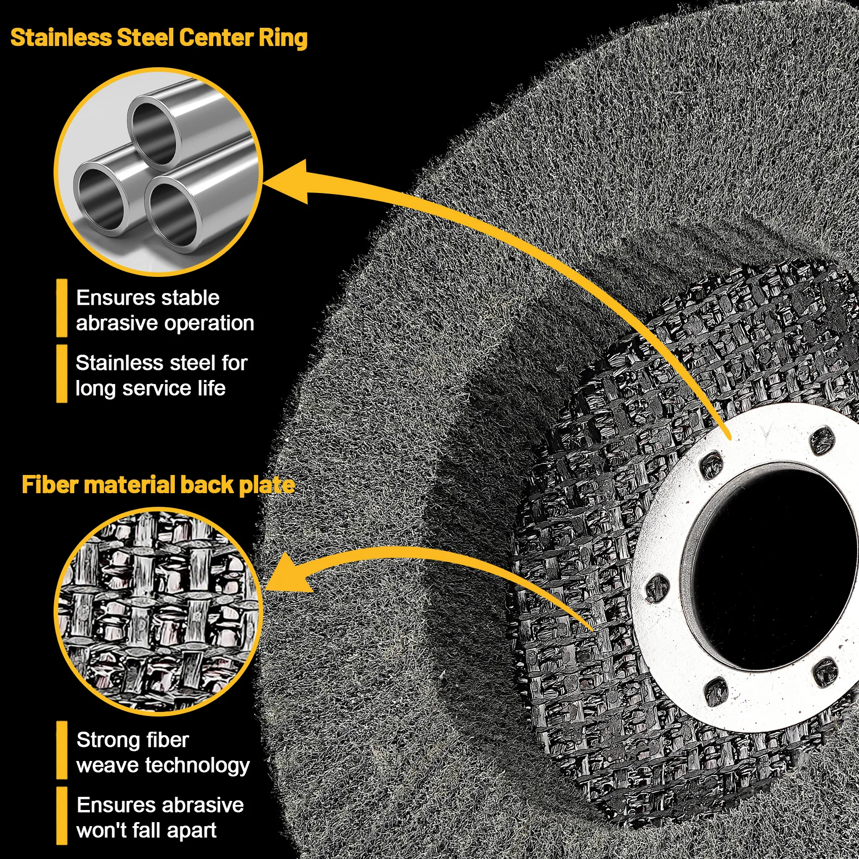 【Structure spéciale】 : la meule à rabat en nylon est faite de fibre de nylon et de papier de verre de haute qualité.Cette structure assortie unique est conçue pour combiner dureté et douceur afin d'augmenter l'efficacité du travail du traitement de surface métallique de 50 %