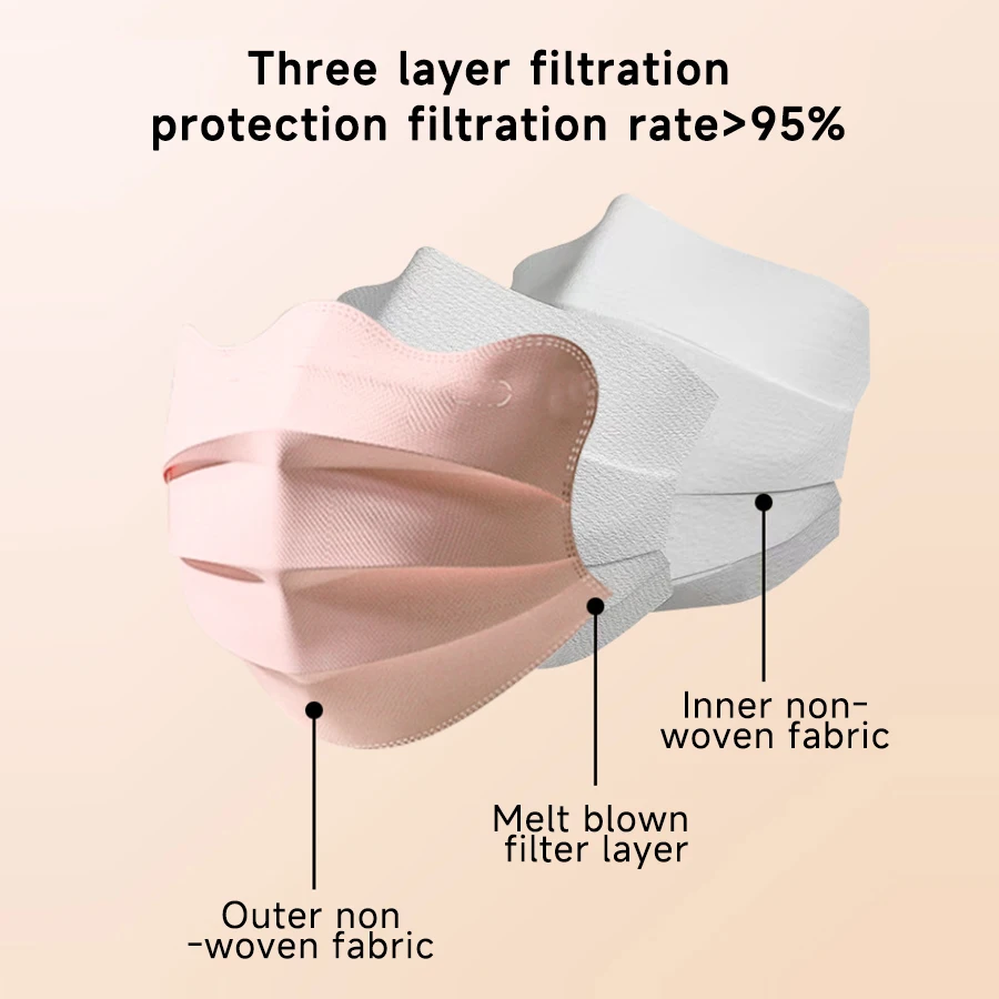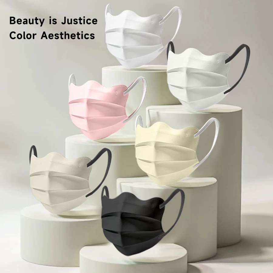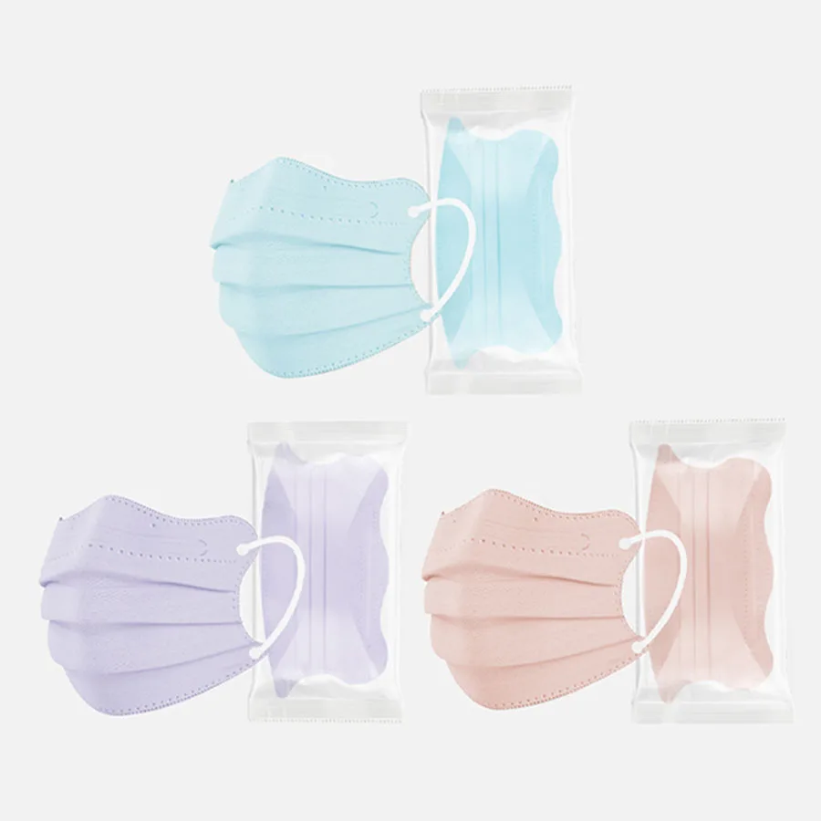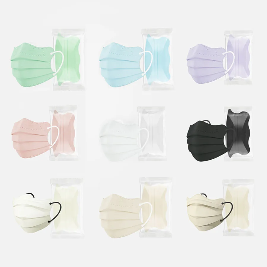 1 à 100 pièces ​ Masque facial jetable enveloppé individuellement 3 couches Morandi couleur protection anti-poussière visage couverture mode forme conception M