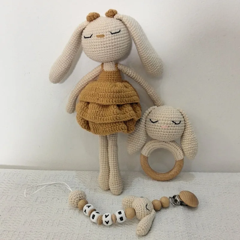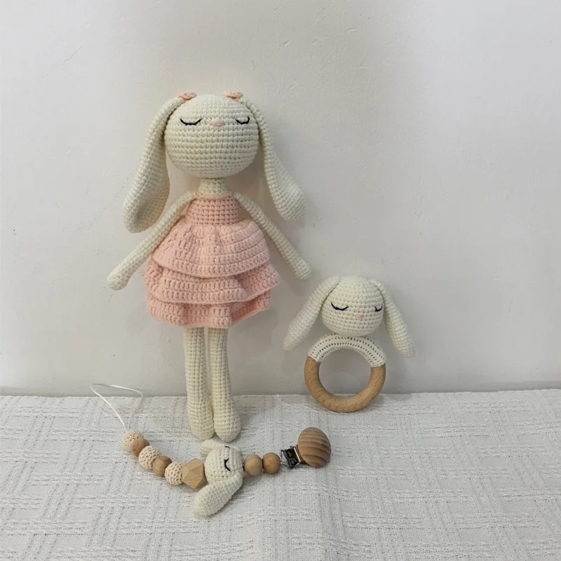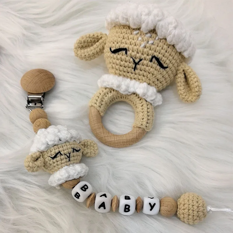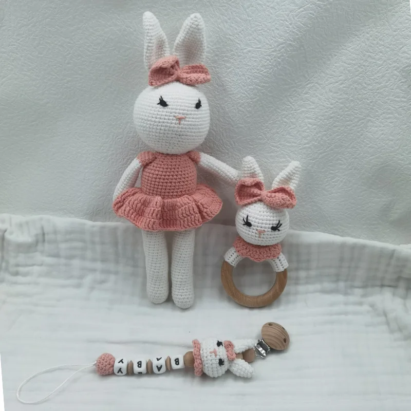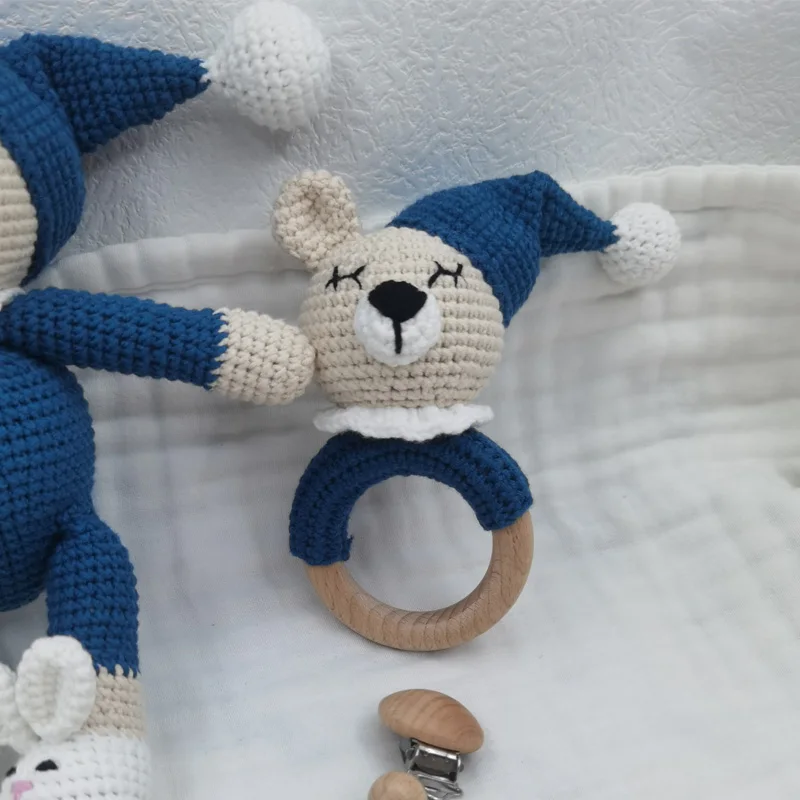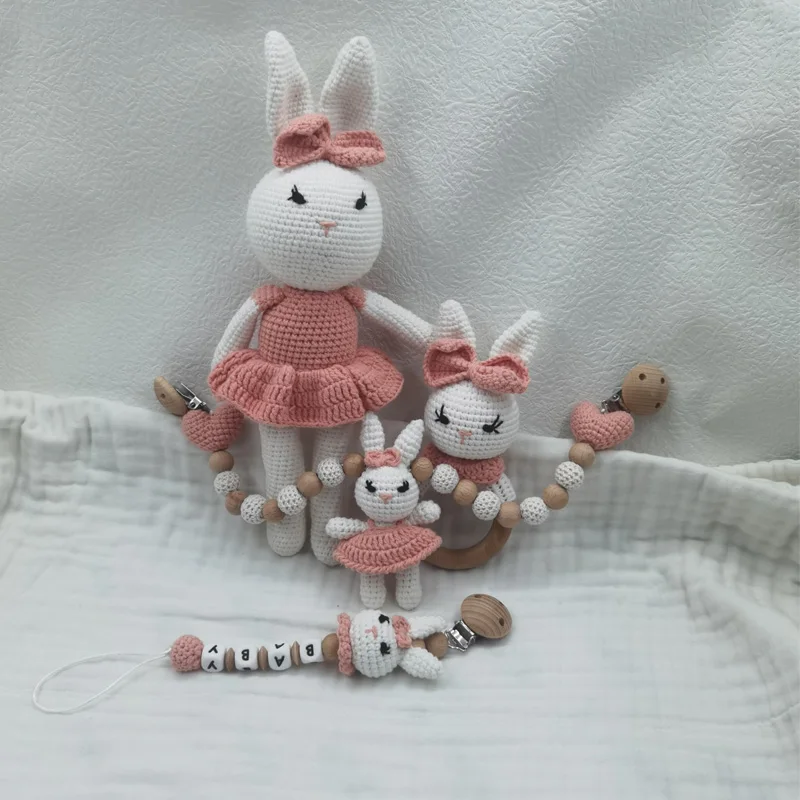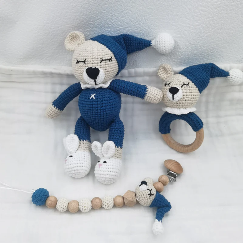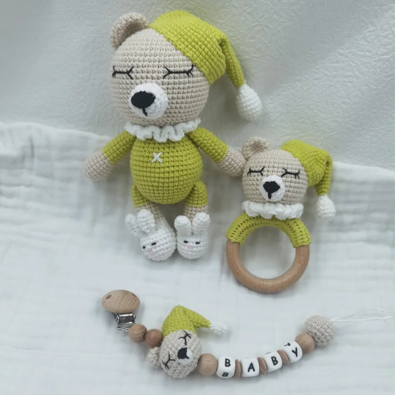 1 ensemble bricolage Crochet ours bébé anneau de dentition nouveau-né lapin hochet jouet en bois molaire anneau de dentition sucette Clips chaîne ensemble bébé trucs