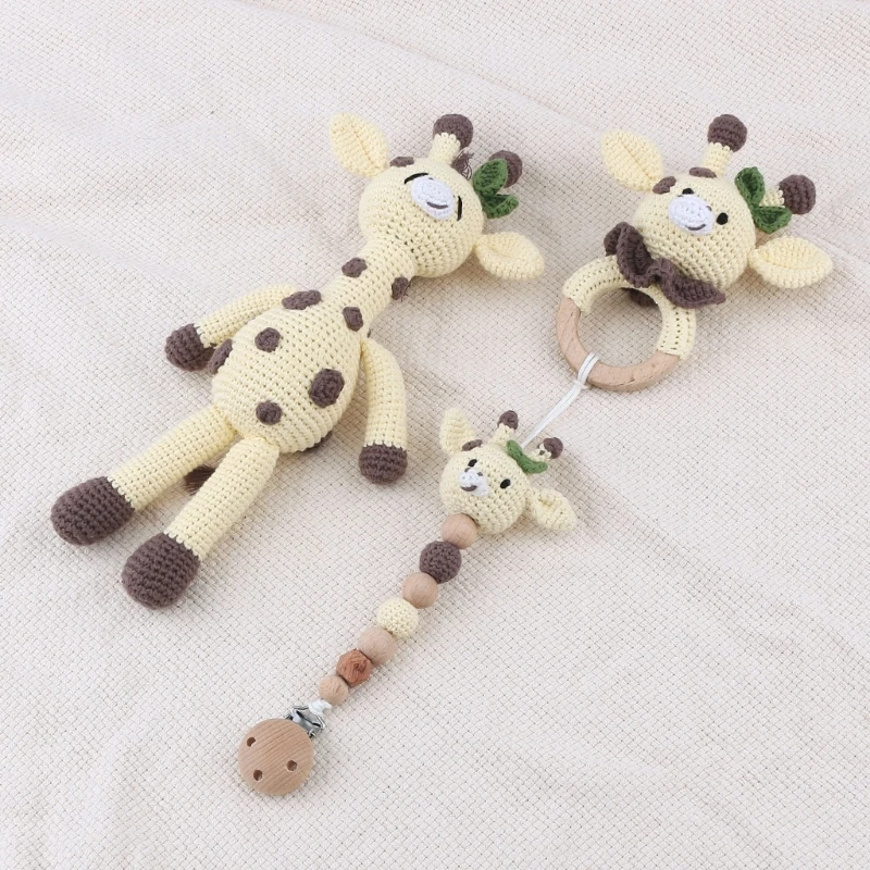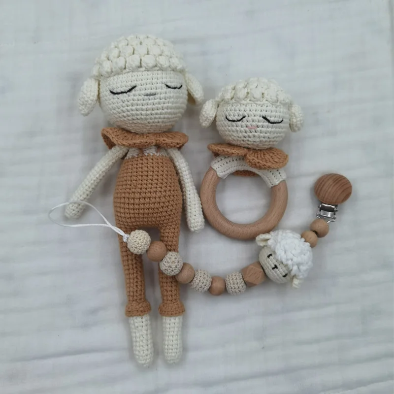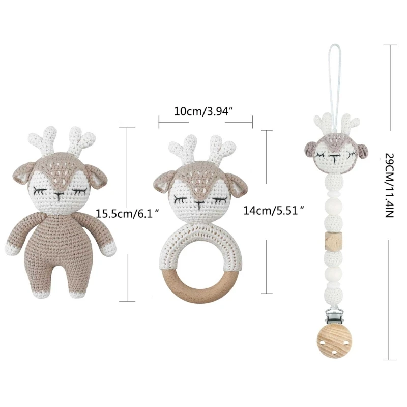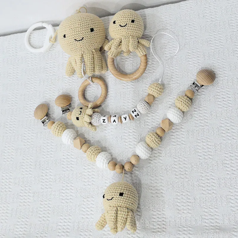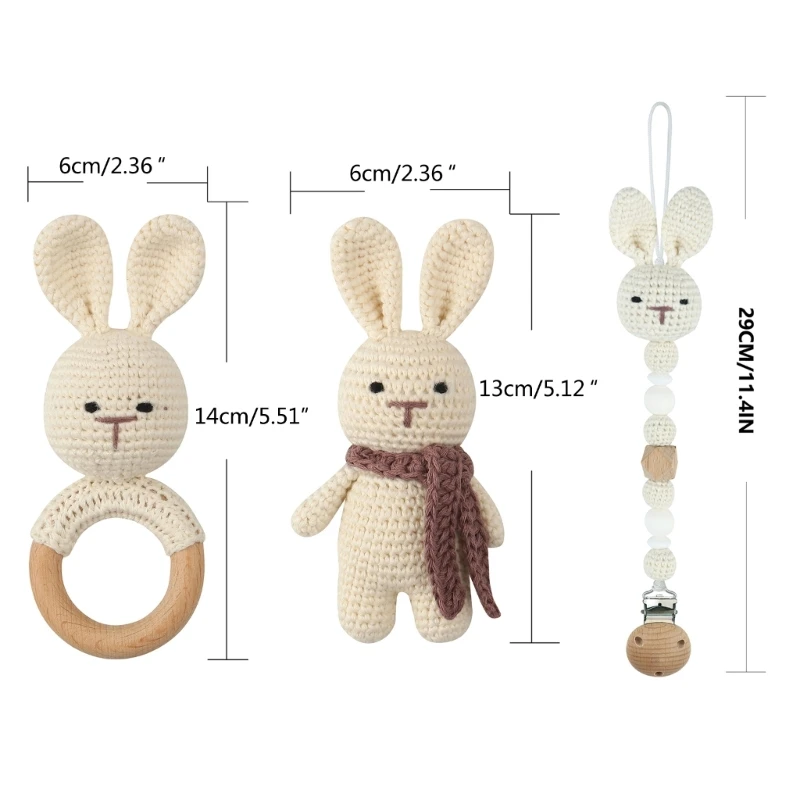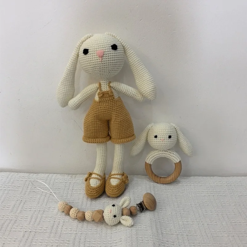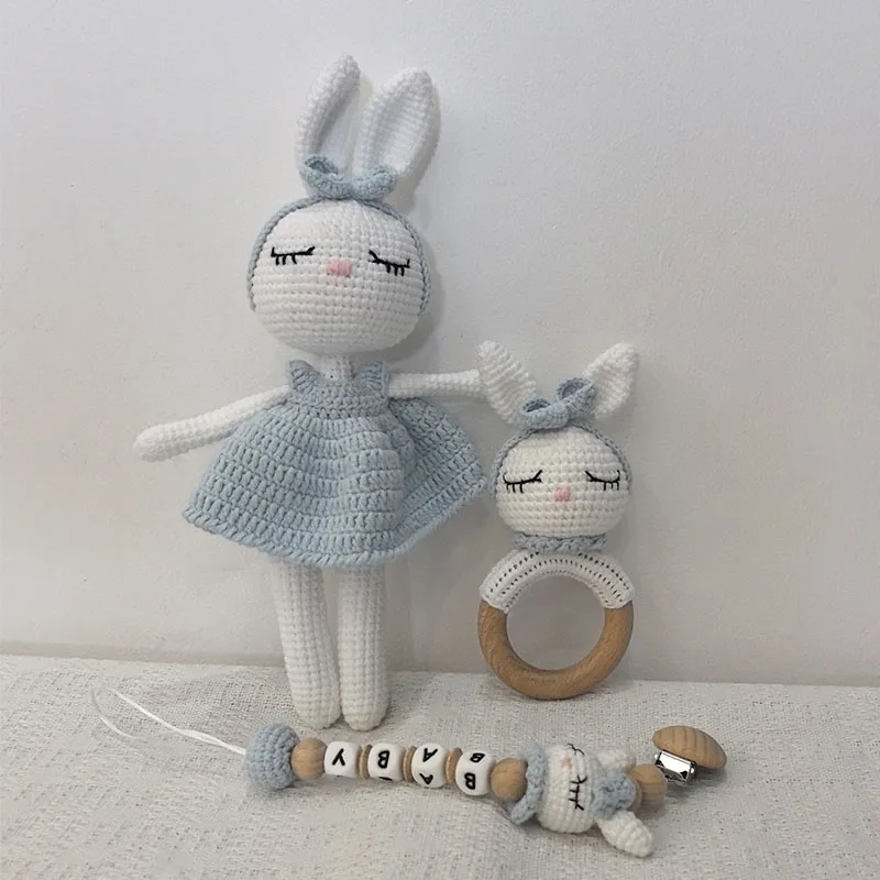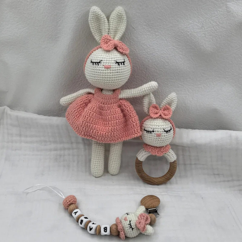 1 ensemble bricolage Crochet ours bébé anneau de dentition nouveau-né lapin hochet jouet en bois molaire anneau de dentition sucette Clips chaîne ensemble bébé trucs