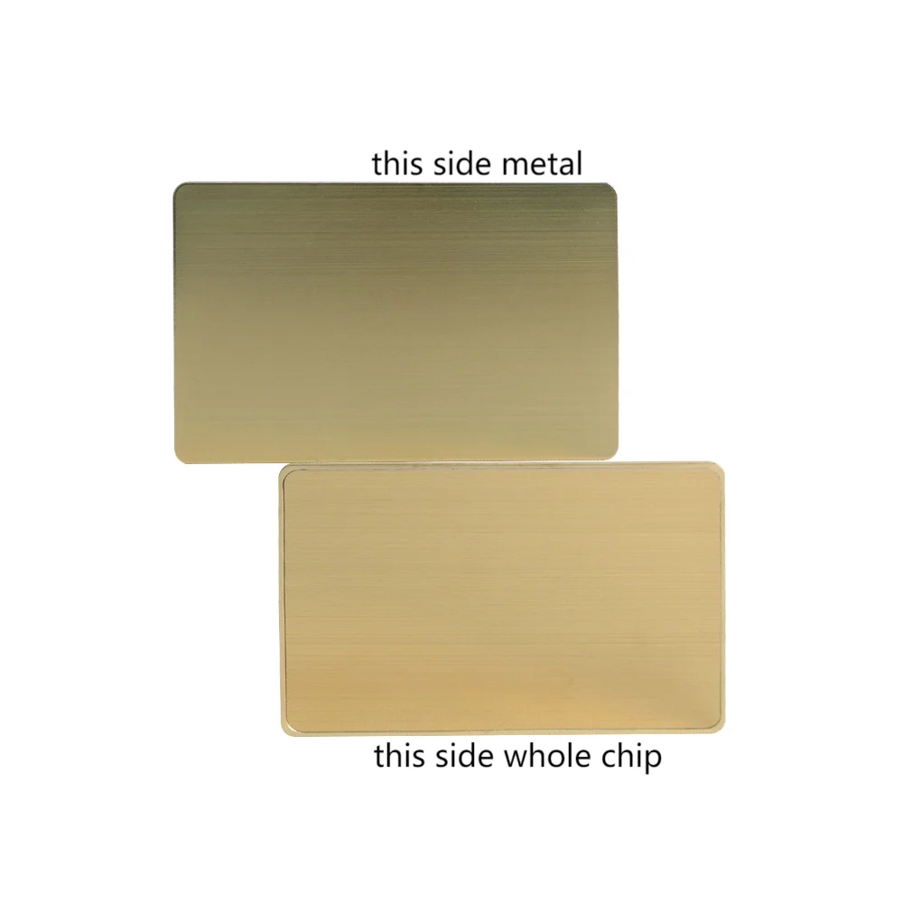 4. Le quatrième type est en métal d'un côté et la puce entière de l'autre côté, en or brossé.
