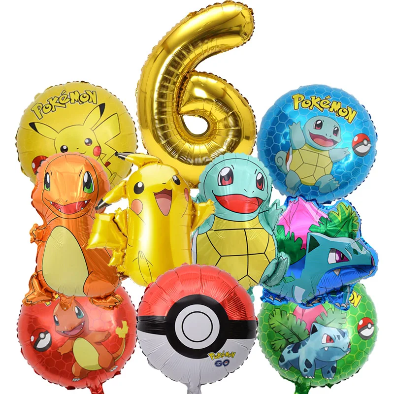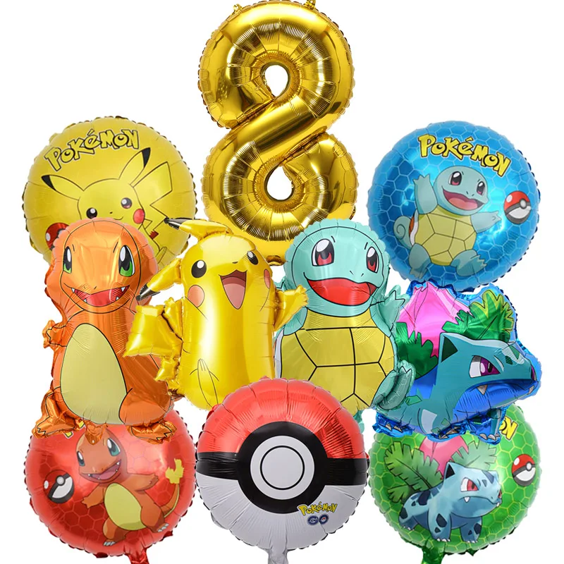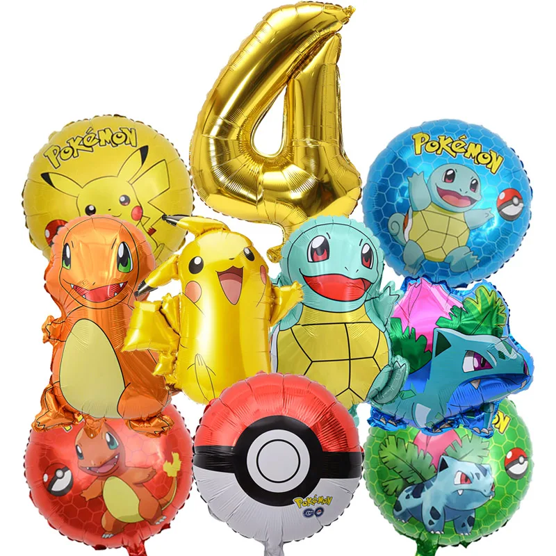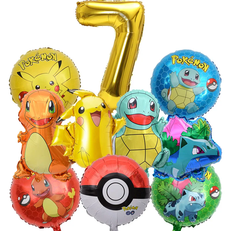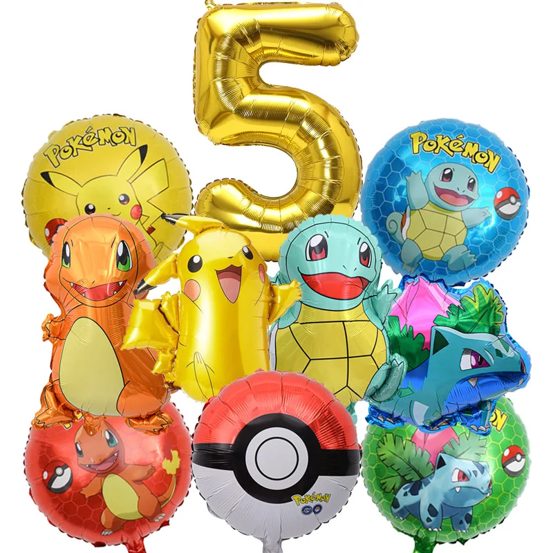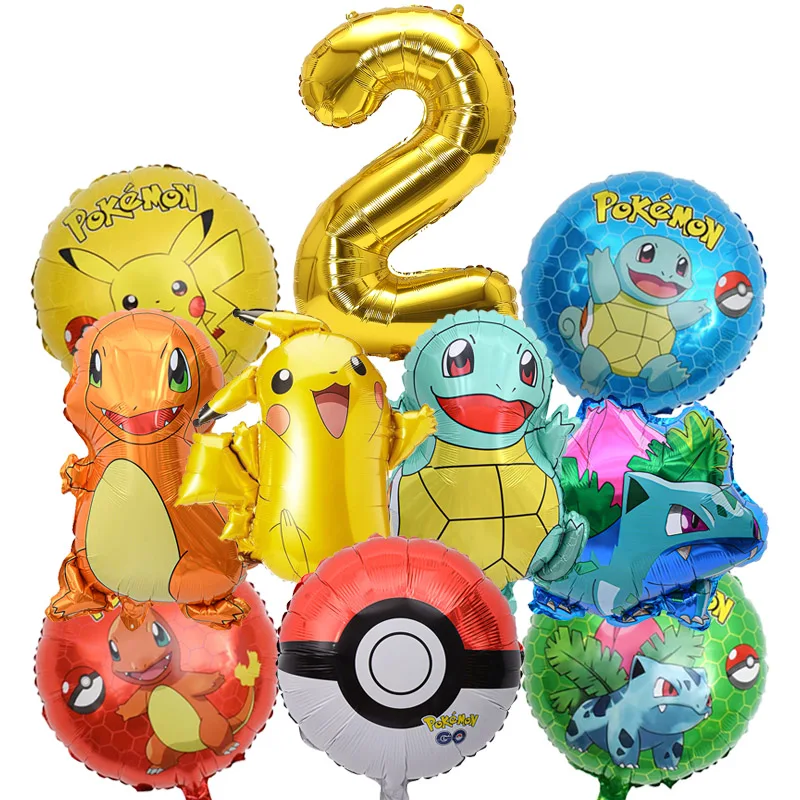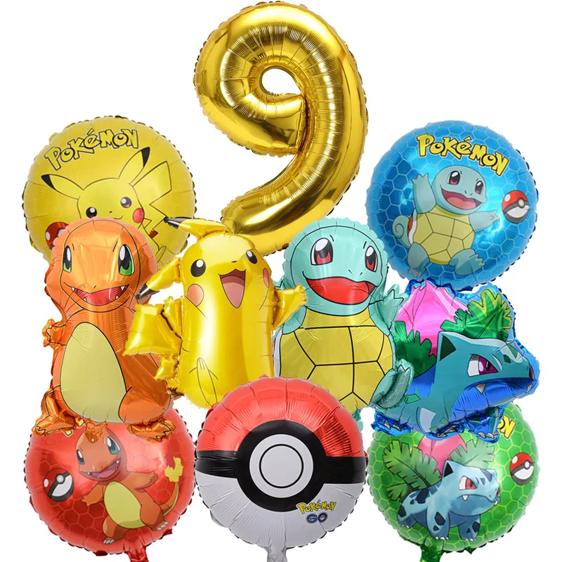 10 pièces Pokemon ballons ensemble Pikachu Pokemon Ball ballons 32 pouces or numéro ballon 1-9 pour enfants 1-9ème décoration de fête d'anniversaire