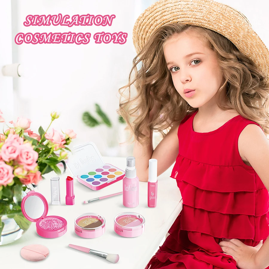 10 pièces/ensemble Simulation semblant maquillage jouer maison jouets jeu cosmétiques ensemble fard à paupières Palette rouge à lèvres applicateurs (pas de maquillage réel)
