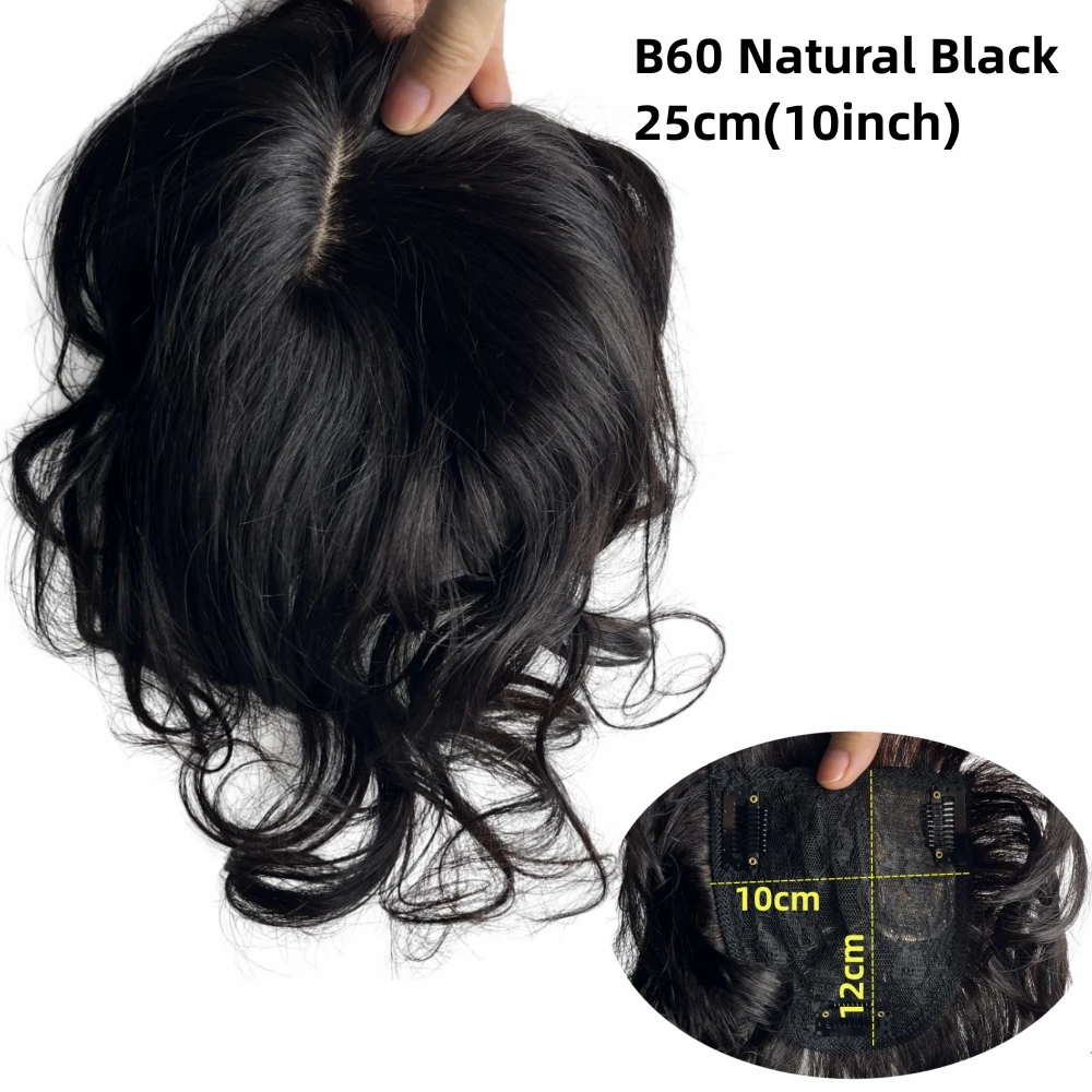 10 pouces corps court ondulé cheveux humains Toppers pour les femmes pince en postiches bouclées Extensions augmenter le Volume des cheveux brun doux non-remy