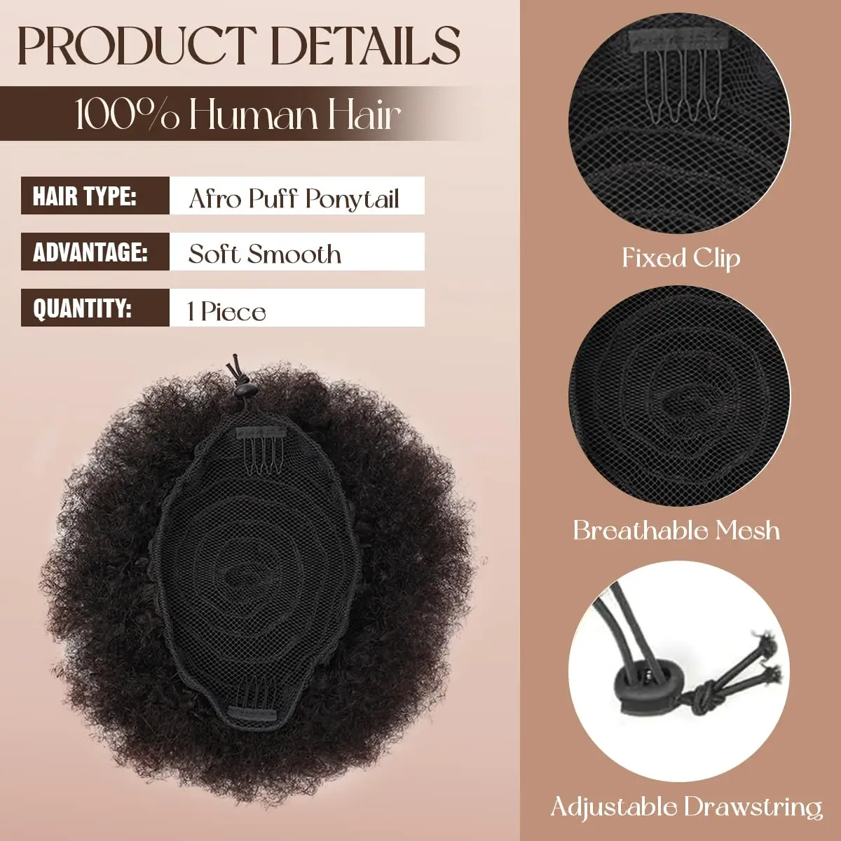 100% cheveux humains Afro crépus bouffées cordon Extensions de queue de cheval pour les femmes 4 # 99J 30 Accessoires pour cheveux afro bouffants crépus bouclés