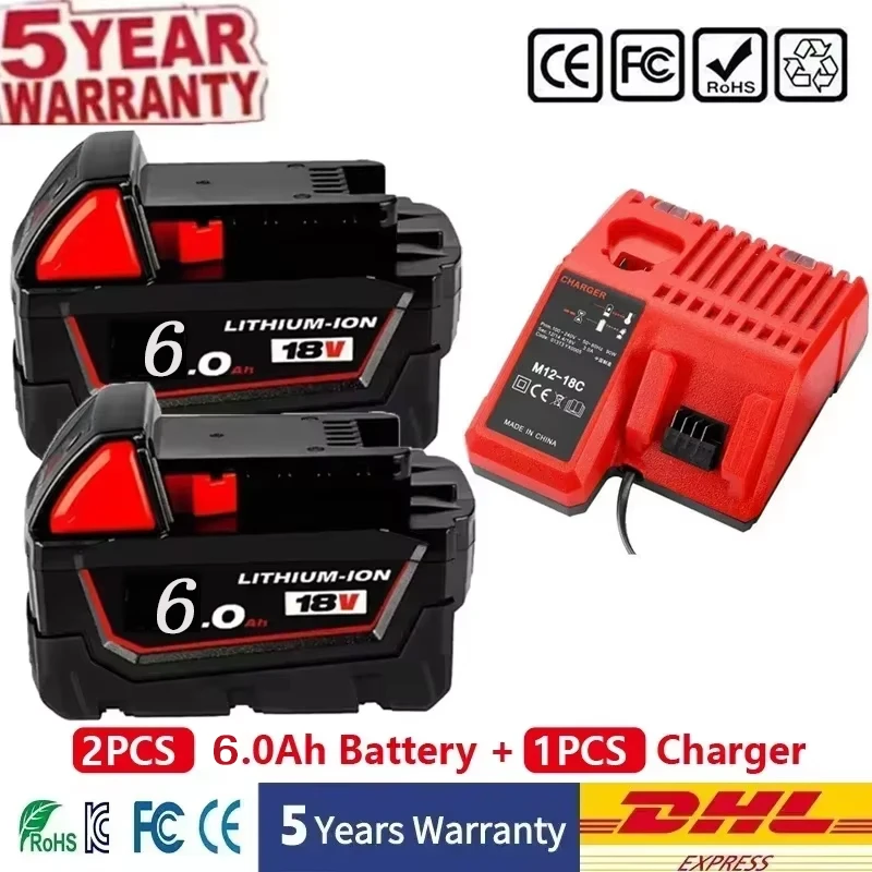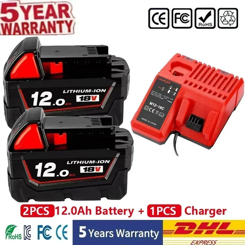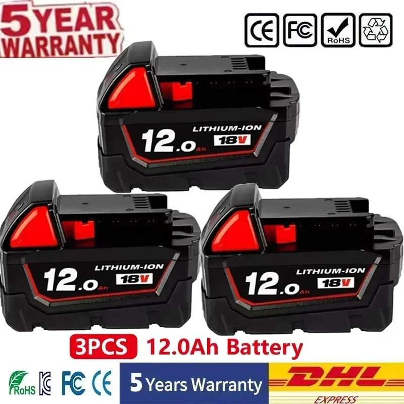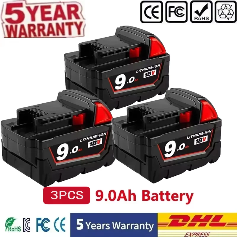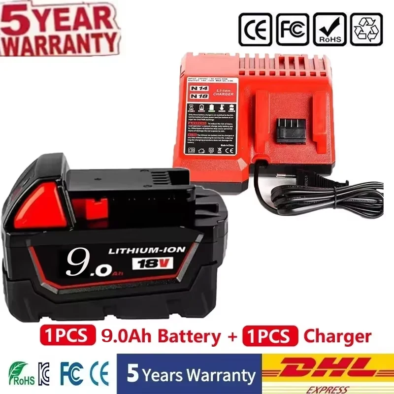 Batteries rechargeables pour Milwaukee M18B5 XC batterie au lithium ION 18v 9.0/6.0/12.0Ah chargeur de batterie pour Milwaukee M18 12V ~ 18V Spécification : Type de batterie : batterie au lithium Tension : 18 volts