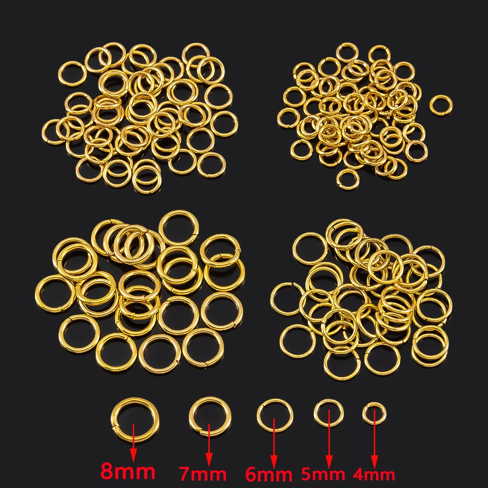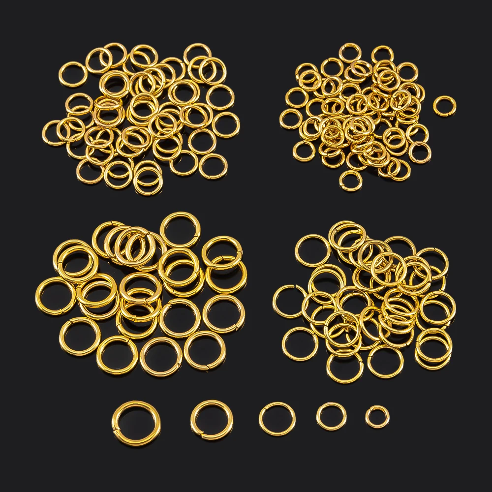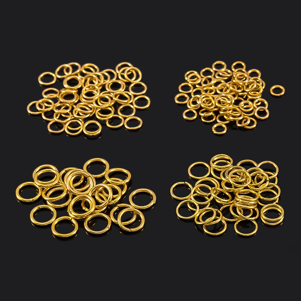 Anneau de saut en acier inoxydable, 100 pièces, 3-15mm, anneaux fendus plaqués or pour la fabrication de bijoux, connecteurs de chane, accessoires de bricolage, vente en gros
