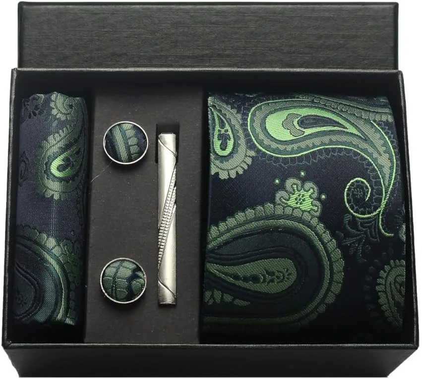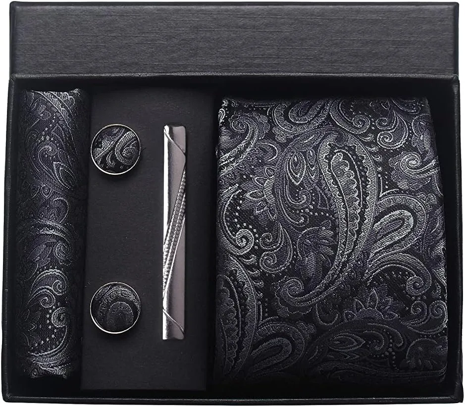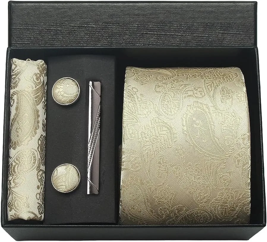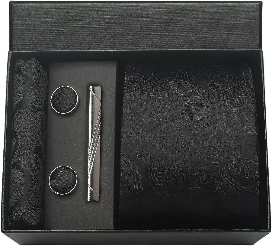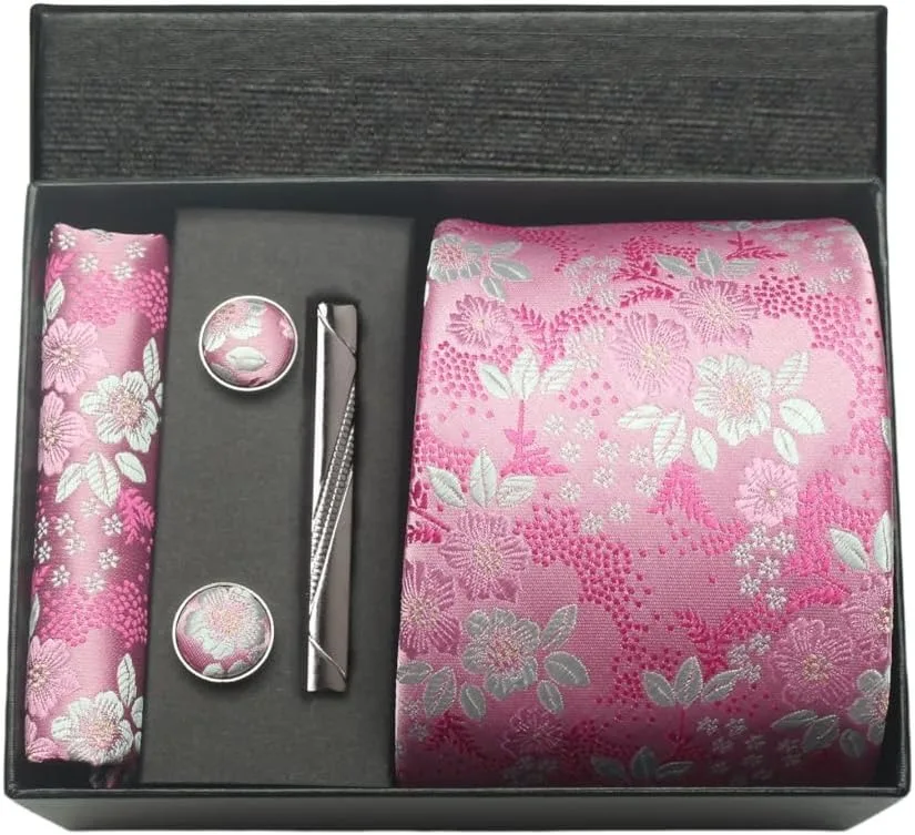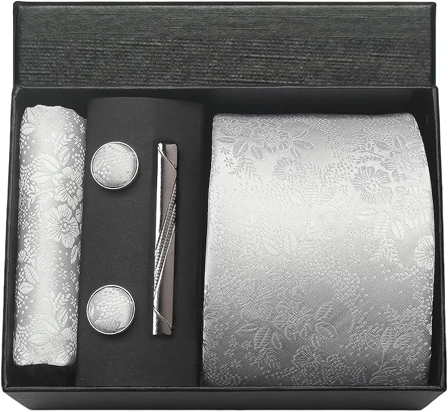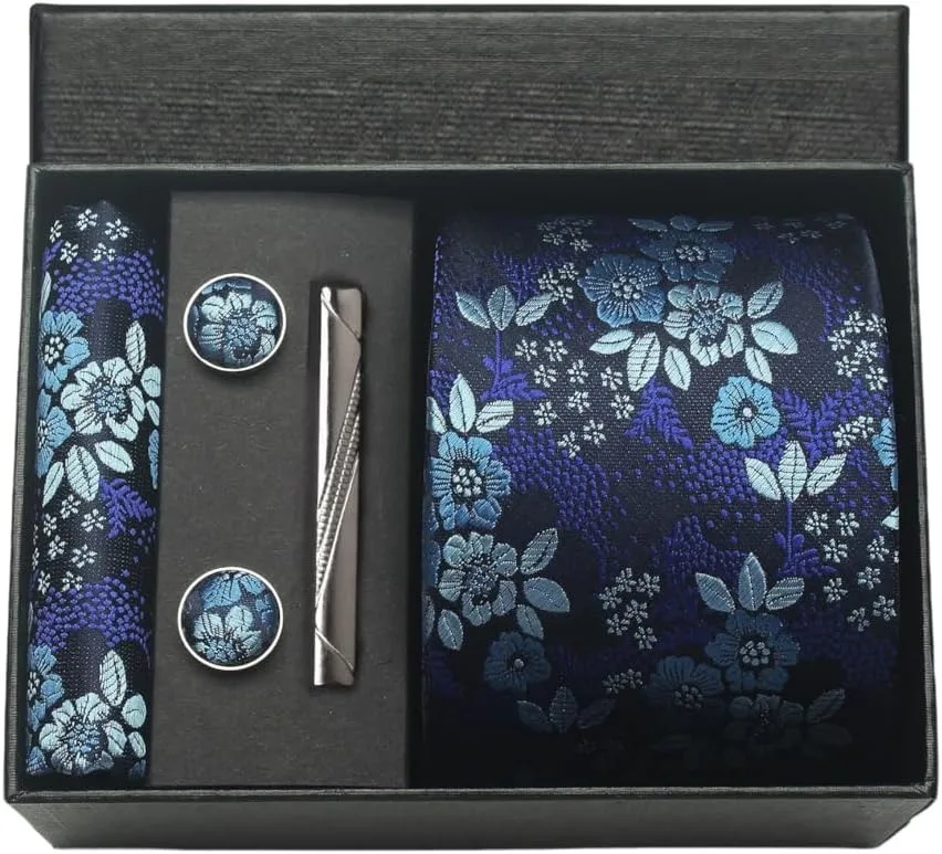 (inclure 1 cravate, 2 boutons de manchette, 1 squre de poche, 1 coffret cadeau et 1 pince à cravate)