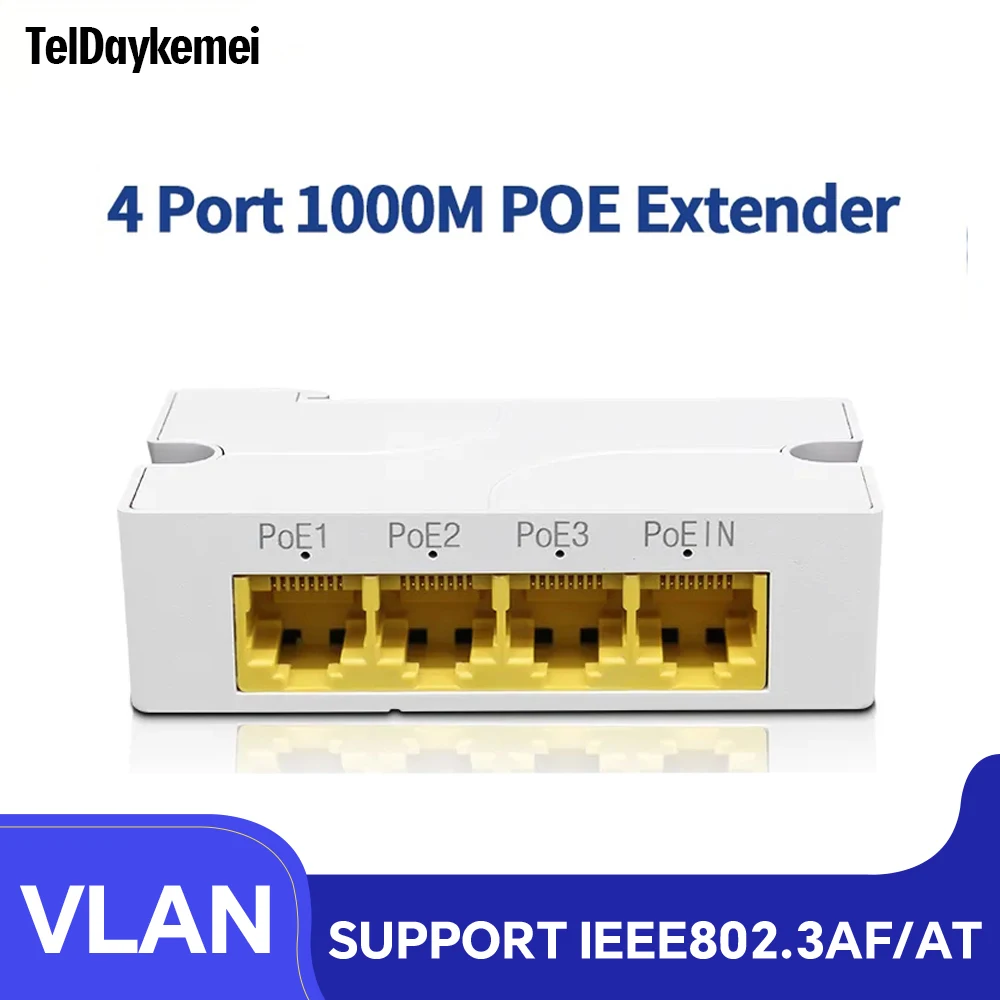 L'extension PoE 5.3 ports dispose de 3 ports Lan 10/100/1000M, parmi eux, un pour l'entrée d'alimentation et les trois autres pour la sortie d'alimentation.Conforme à 10/100/1000 BASE-TX,IEEE 802.3 af-PoE.