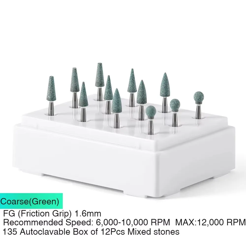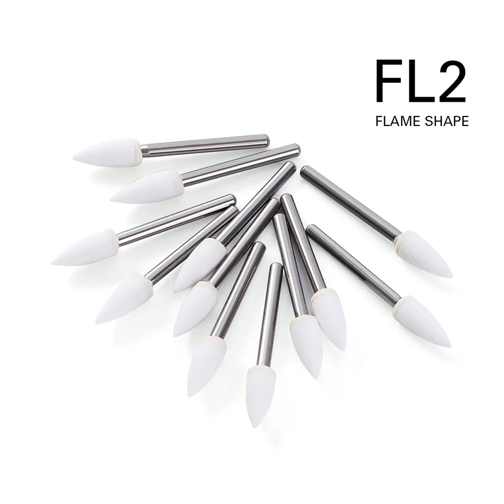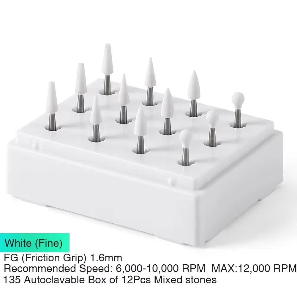 (12 pièces/boîte) fraises de polissage en pierre blanche Azdent Dia1.6mm pour la finition de l'émail de porcelaine et de la résine Composite flamme/conne/forme ronde