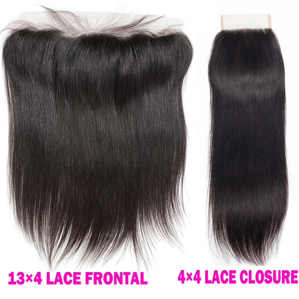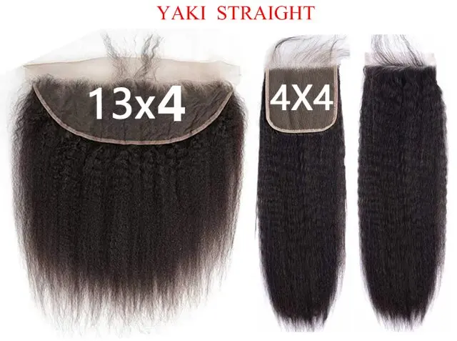 Fermeture frontale en dentelle suisse 4x4 13x4, pré-épilée, transparente, peut être blanchi, cheveux humains brésiliens lisses, vague d'eau, crépus bouclés, fermeture en dentelle uniquement