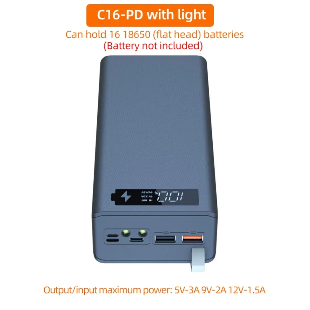 16*18650 boîtier de batterie externe C16 USB soudage gratuit boîtier de batterie externe détachable Portable QC 3.0 PD bricolage boîtier de coque pour Powerbank