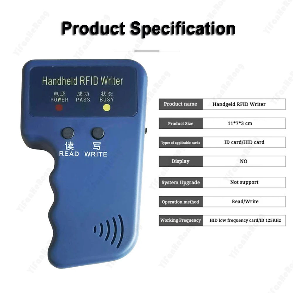 6.Ne peut copier que les cartes RFID 125 KHz, compatibles avec T5577, CET5200, EM4305 et EN4305.