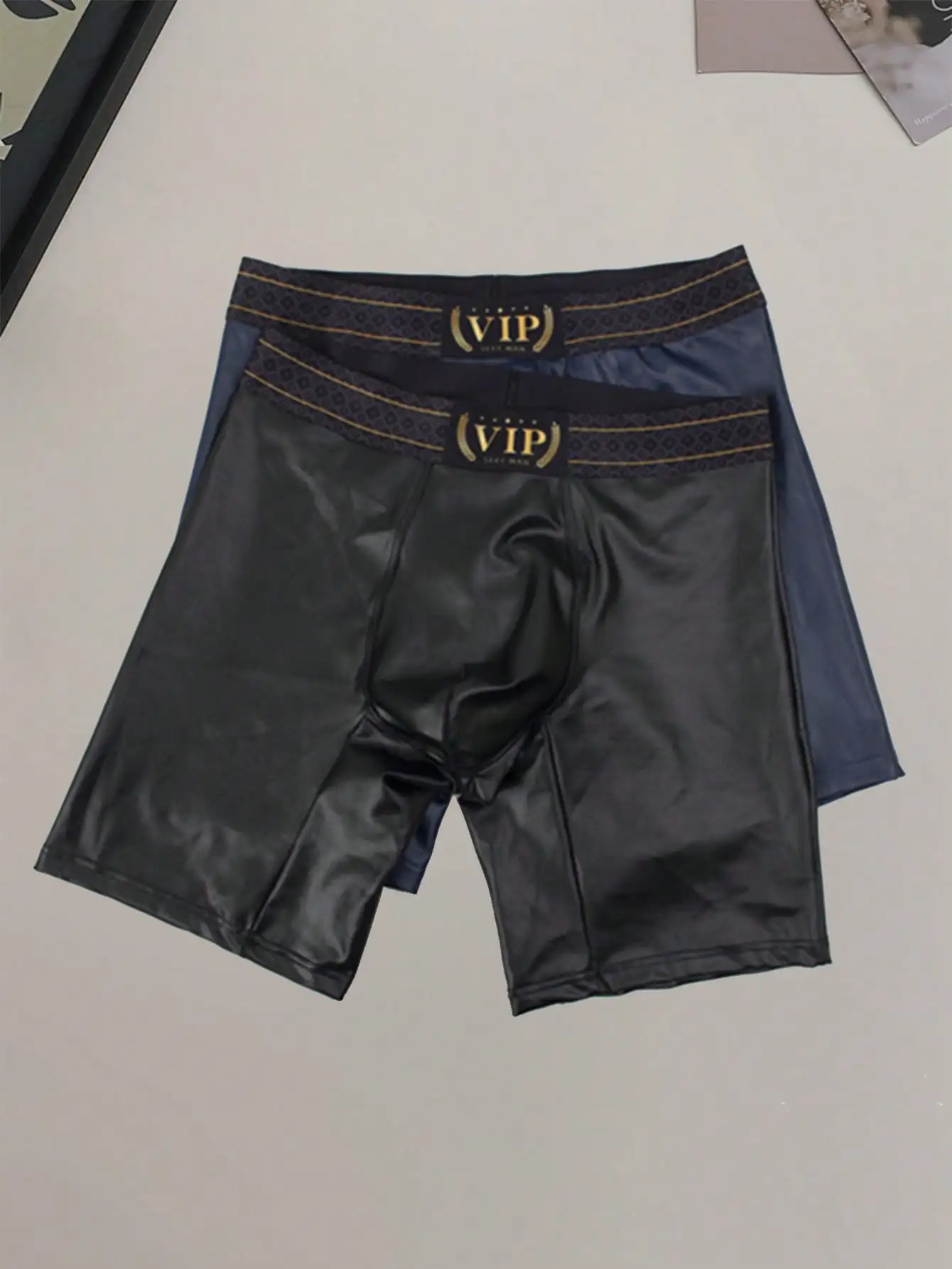 2 pièces couleur unie lettre basique sport décontracté tricoté tissu hommes taille moyenne façonnage sport sous-vêtements en cuir