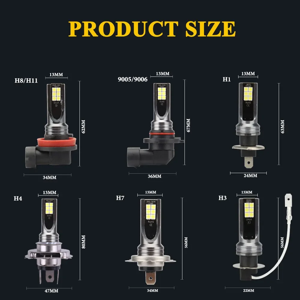 2 pièces H8 H9 H1 H3 Led H11 9005 HB3 9006 HB4 voiture CSP LED antibrouillard phares ampoules 6000K blanc Auto antibrouillard feu de jour