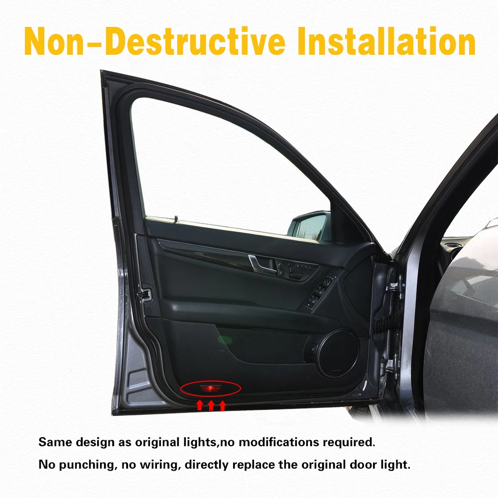 Remarque : assurez-vous que votre voiture est équipée d'un éclairage de porte d'origine lorsque vous souhaitez remplacer ces lumières de porte.