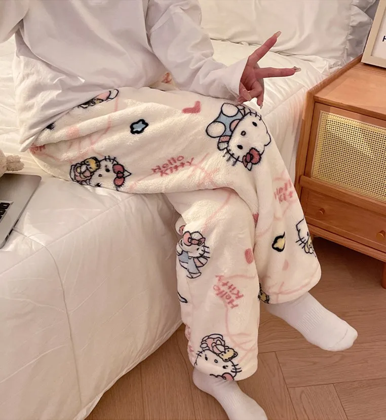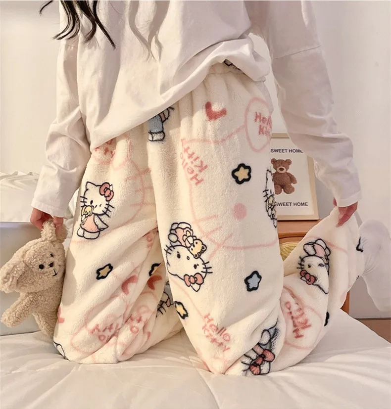 2025 printemps Sanrio Hello Kitty femmes pyjama pantalon Anime flanelle doux pantalons décontractés dessin animé maison pantalon Couple cadeau