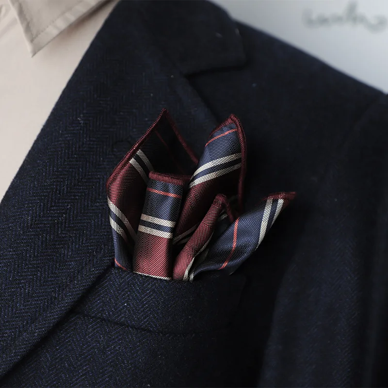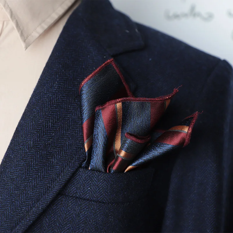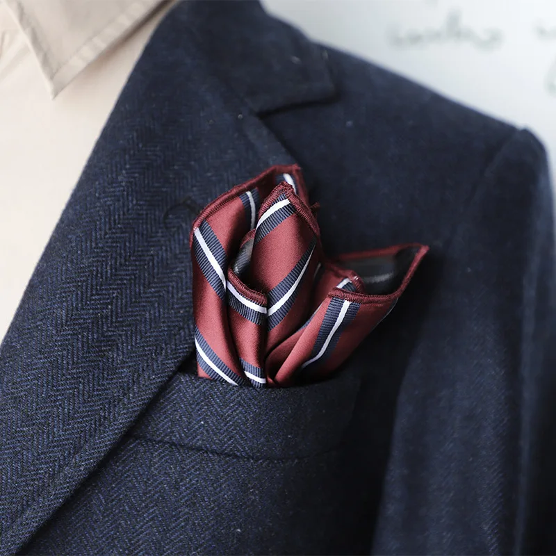 23 cm classique rayé poche carré hommes d'affaires Paisley points mouchoir costume formel poche serviette décontracté Polyester marron Hanky