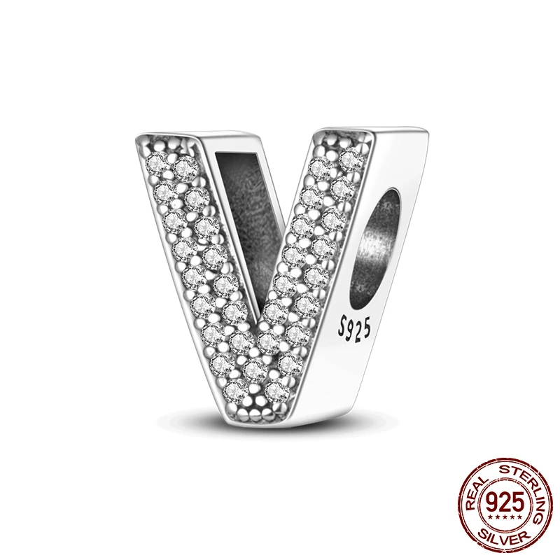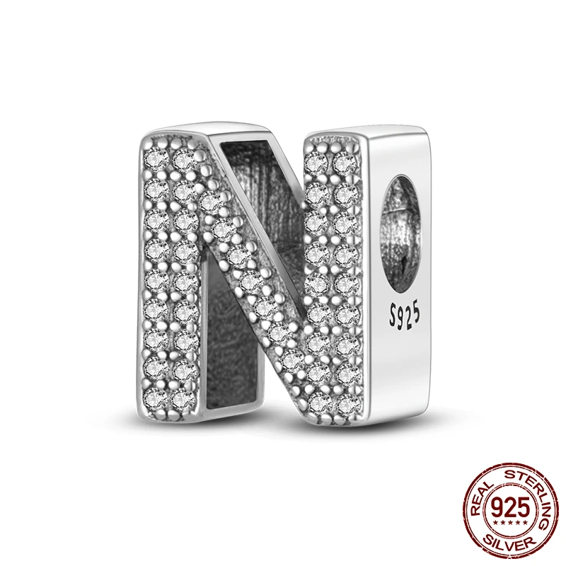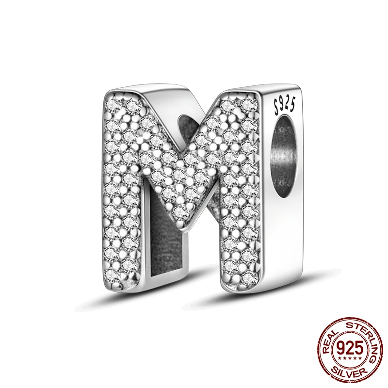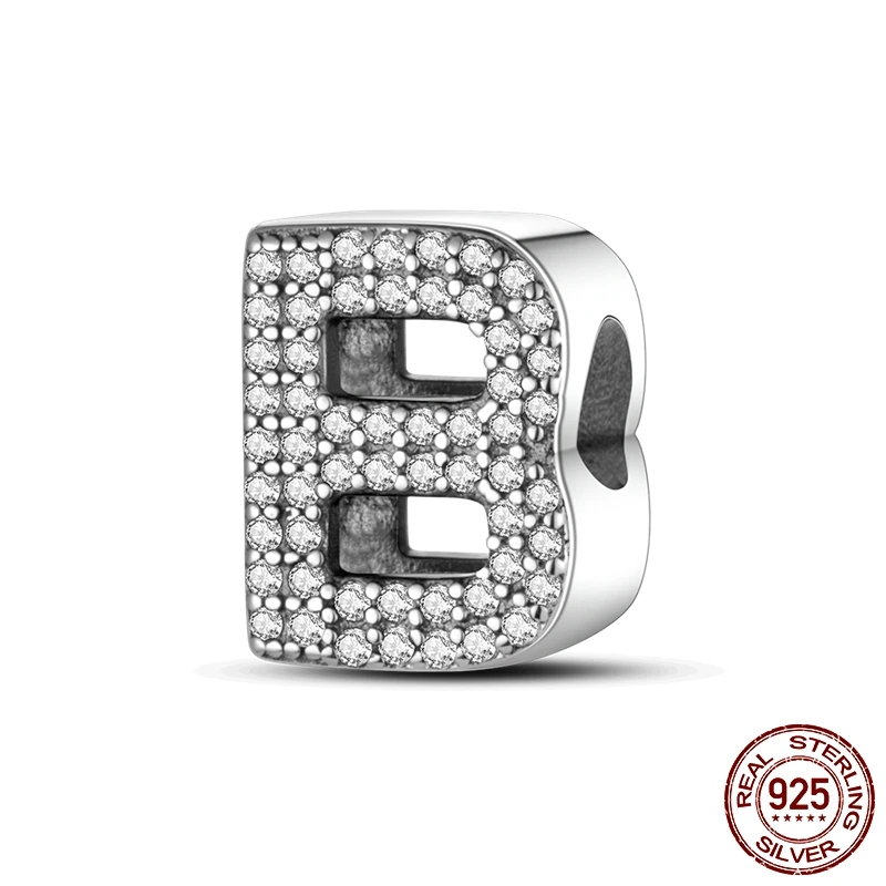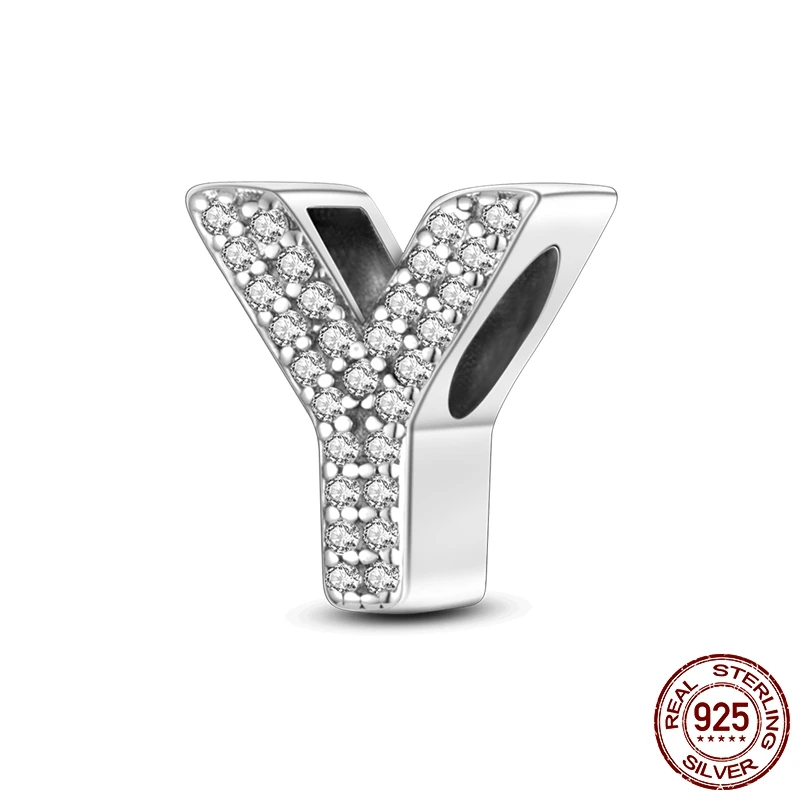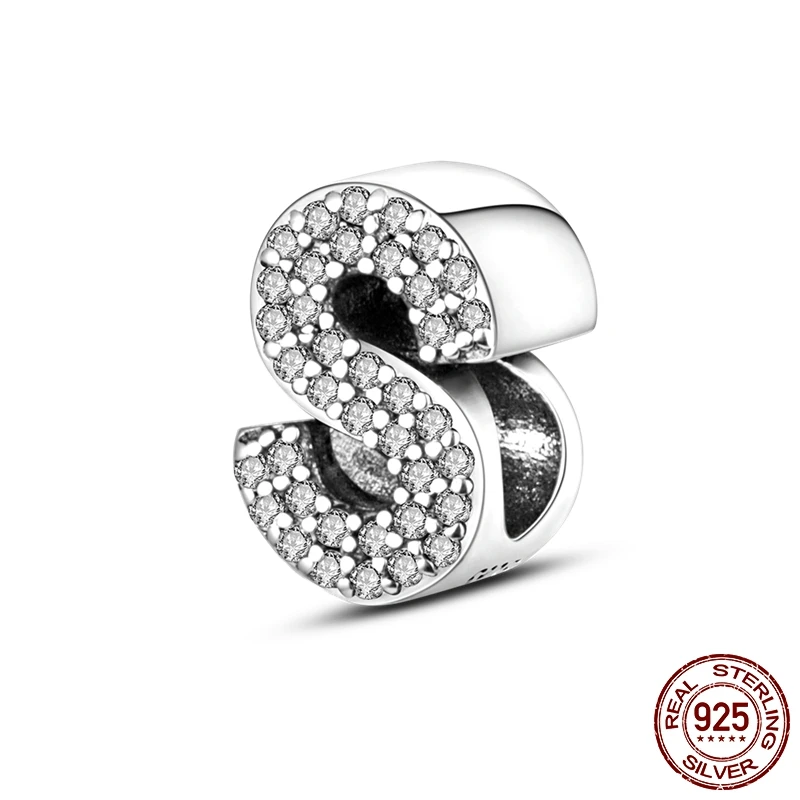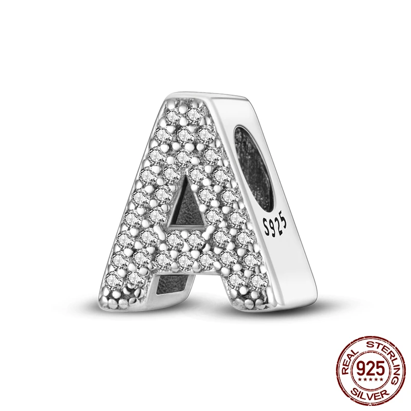 26 A-Z Alphabet perles 925 en argent Sterling lettre d'amour breloque ajustement Original Bracelet breloques Bracelet CZ Zircon perle bijoux