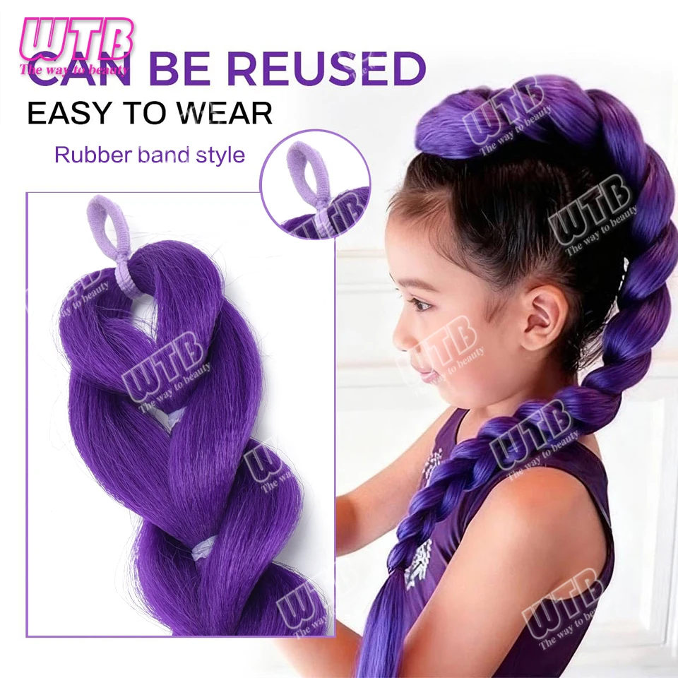26 pouces violet tresses queue de cheval élastique pré tressage cheveux synthétiques violet Extensions de cheveux pour Halloween Costume Cosplay