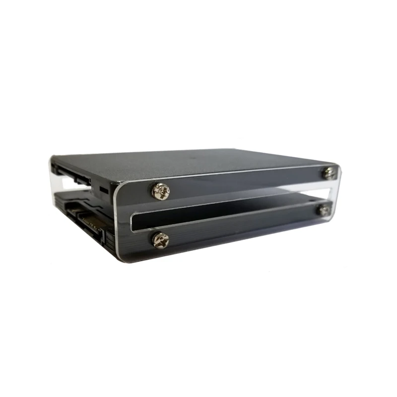 Deux disques durs à trois couches de 2,5 pouces peuvent être connectés et sécurisés à l'aide de deux supports de 2,5 pouces.