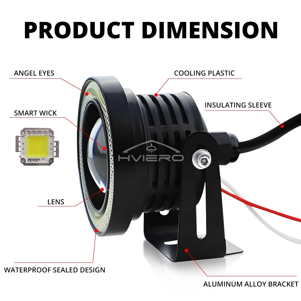 2X 3.5 3.0 2.5 Inch COB Angel Eyes Fog Lights Led Lens Car Headlight Lamp DRL