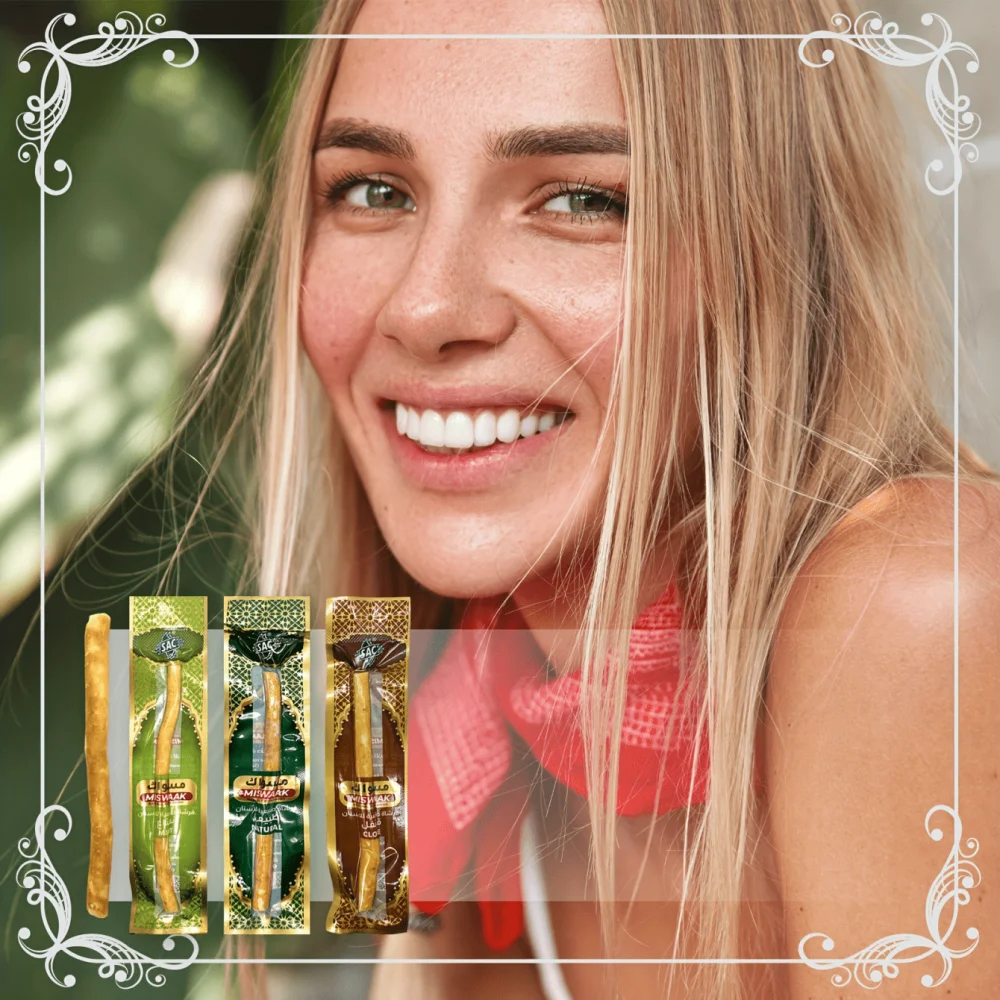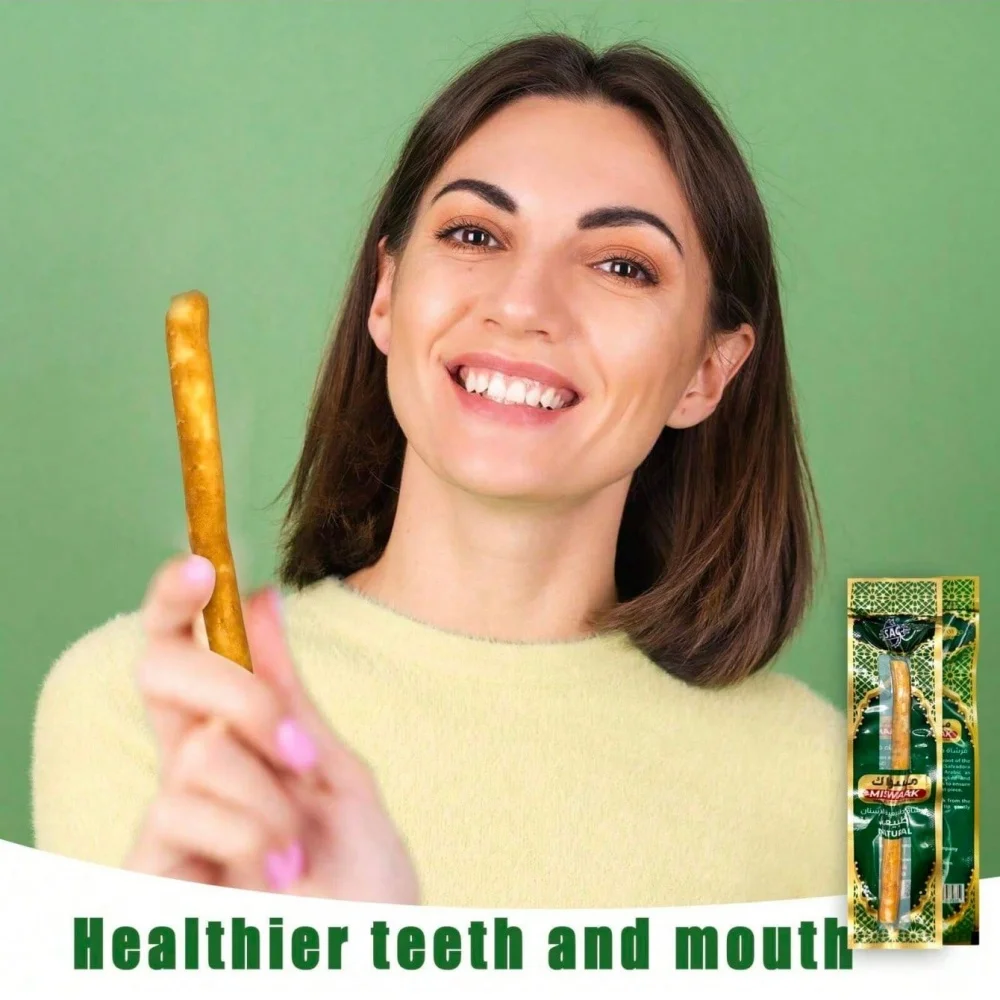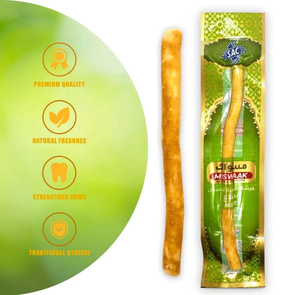 3 brosses à dents en forme de bâtonnets Miswak aux saveurs variées - Plantes arabes naturelles pour des dents saines et une haleine plus fraîche (menthe, original et clou de girofle)