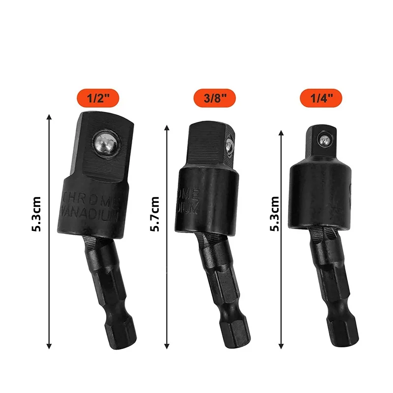 3 pièces 360 ° Perceuse électrique, manchon de tournevis à Air, adaptateur universel, poignée hexagonale à tête carrée, adaptateur rotatif, outil de bielle