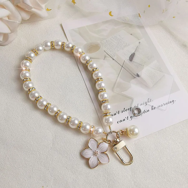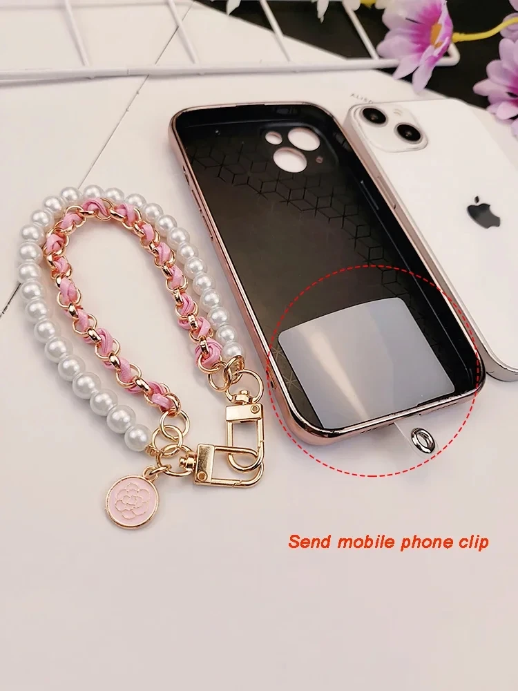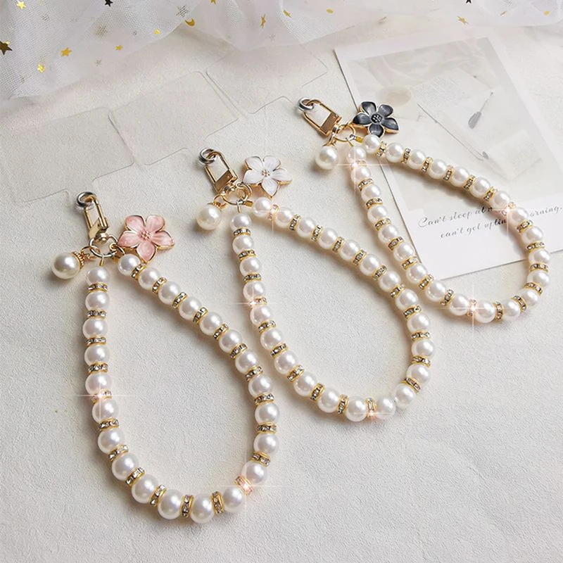 3 pièces en cuir perle camélia téléphone portable bracelet à breloques chaîne Anti-perte universel sangle de téléphone portable corde pendentif porte-clés en métal