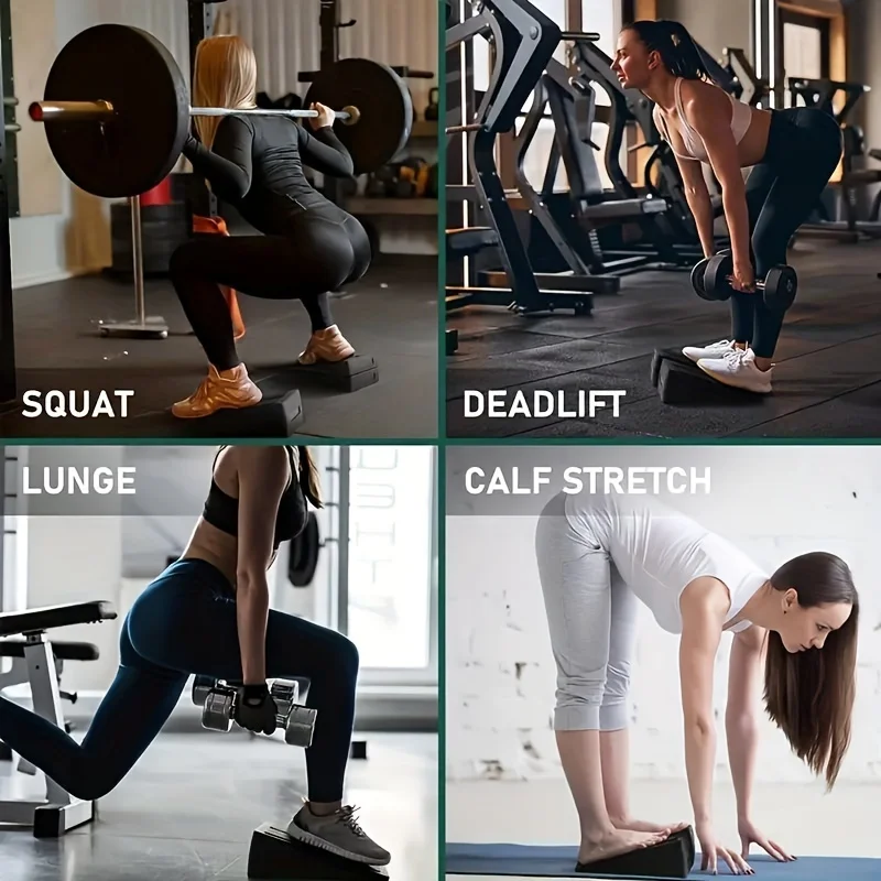 tirement des mollets, blocs de levage des mollets, briques de squat, briques de yoga, étirement des chevilles, étirement des jambes et des genoux.