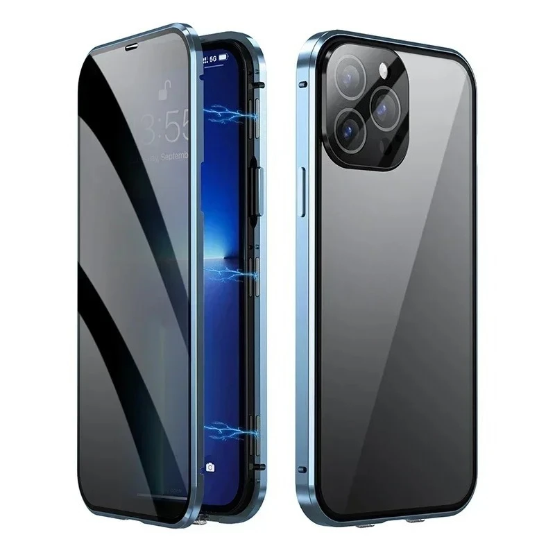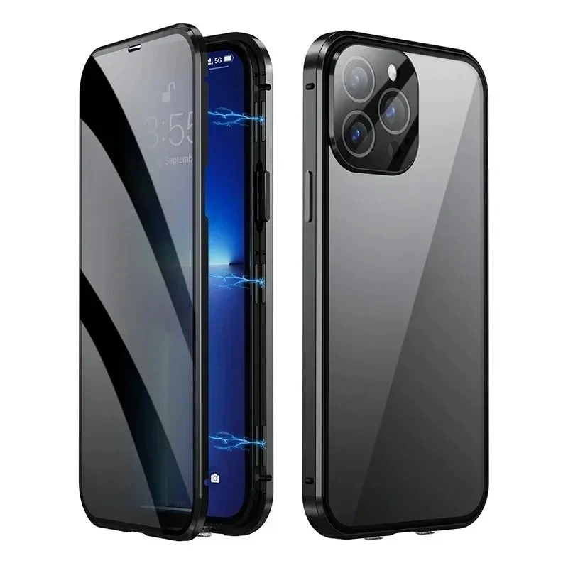 360 ° Étui de protection intégrale en métal magnétique avec verre double face et fermeture à pression pour la confidentialité, compatible avec iPhone 17 16 15 14 Plus 13 12 11 Pro Max 16E