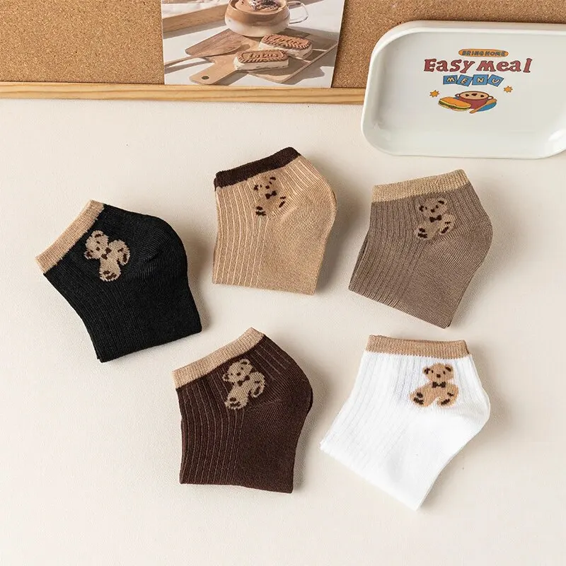 4/5/6/8 paires de chaussettes courtes ours en peluche mignon avec bouche peu profonde printemps et été chaussettes de bateau à Tube court assorties décontractées