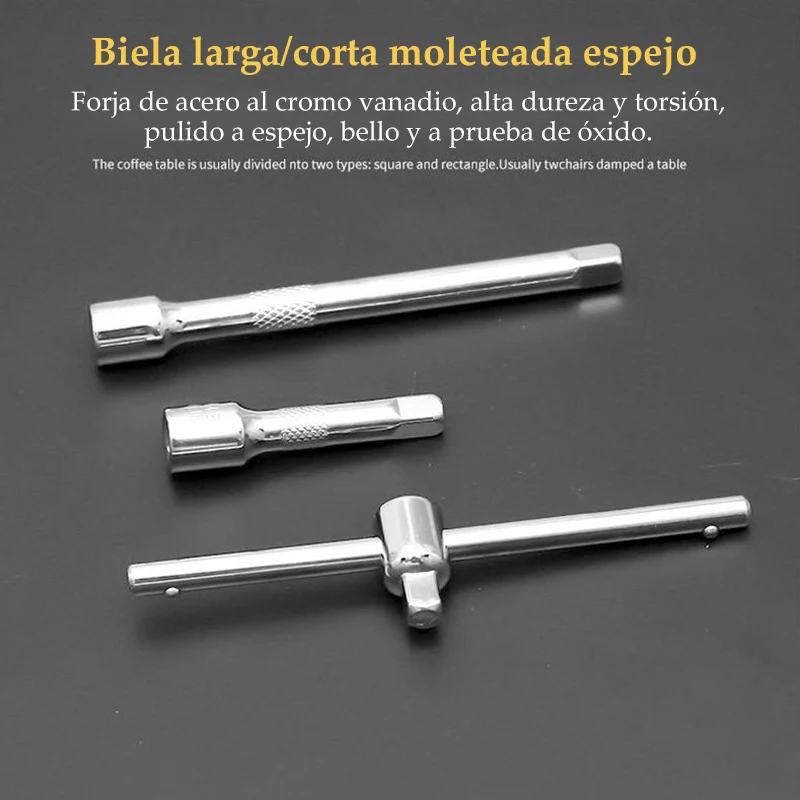 Dimension: 230*120*40CM Poids du produit : 1,2 kg. Matériau : acier au chrome vanadium 1: manchon Spinner (4/5 5/7 mm) Croix (1/2/3), mètre (1/2/3) Hexagone (3/4/5/6/7 mm) Fleur (10/15/20/25/30/40 mm) 2 : Clé hexagonale (1,5/2/2,5 mm) 3 : douille hexagonale (4/4.5/5/5/5/5/7/8/10/11/12/13/14 mm). 4 : Joint universel 5 : barre de joint courte de 2 pouces/barre de joint de 4 pouces de long/barre de joint flexible 6 : Cliquet 1/4 7 : barre pivotante 1/4 carrée 8 : barre coulissante 1/4 9 : Joint de tête spinner