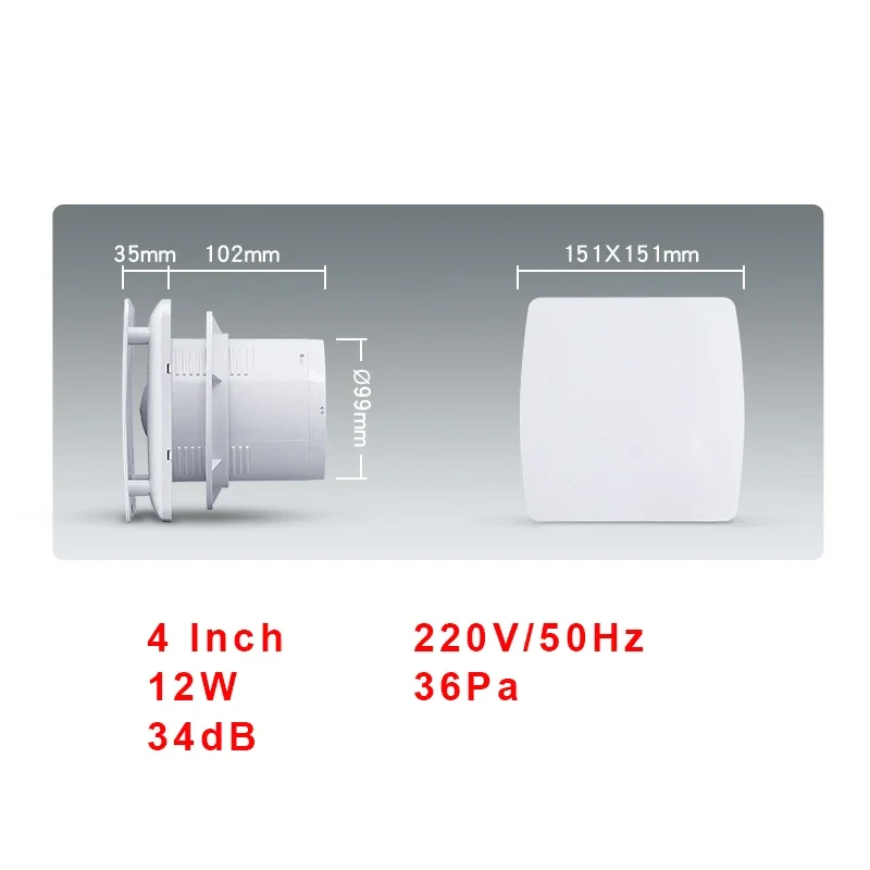 Il s'agit d'un ventilateur d'extraction pour une bonne ventilation et une bonne respirabilité, et il est parfait pour les zones de ventilation d'extraction continue ou périodique telles que les salles de bains, les douches, les cuisines et autres espaces.
