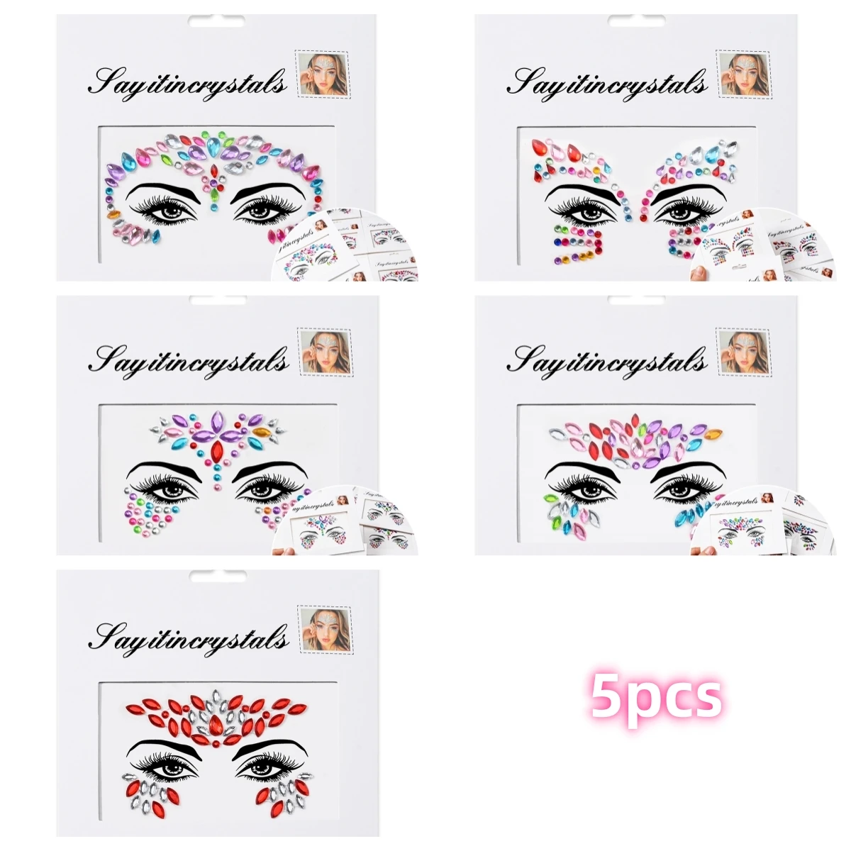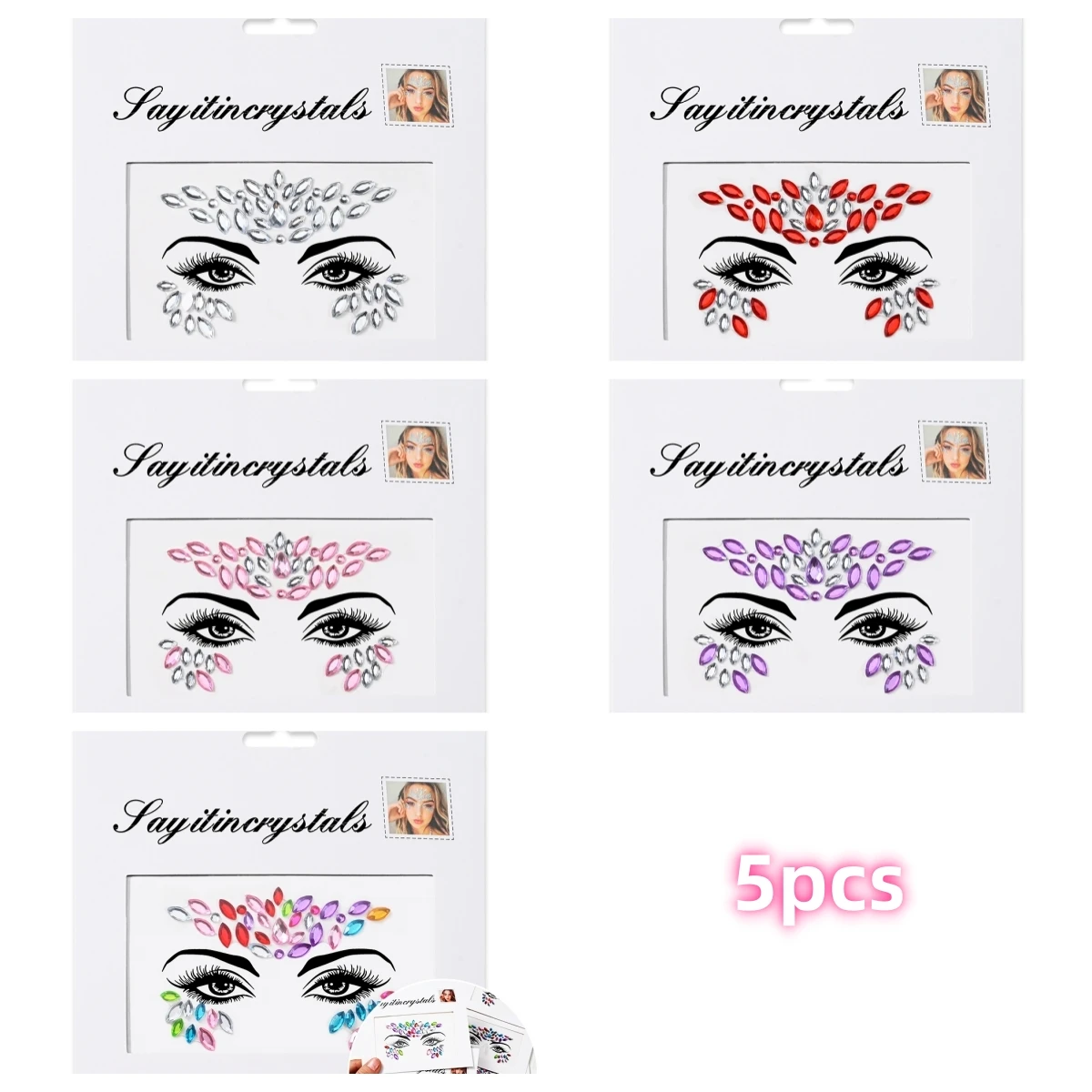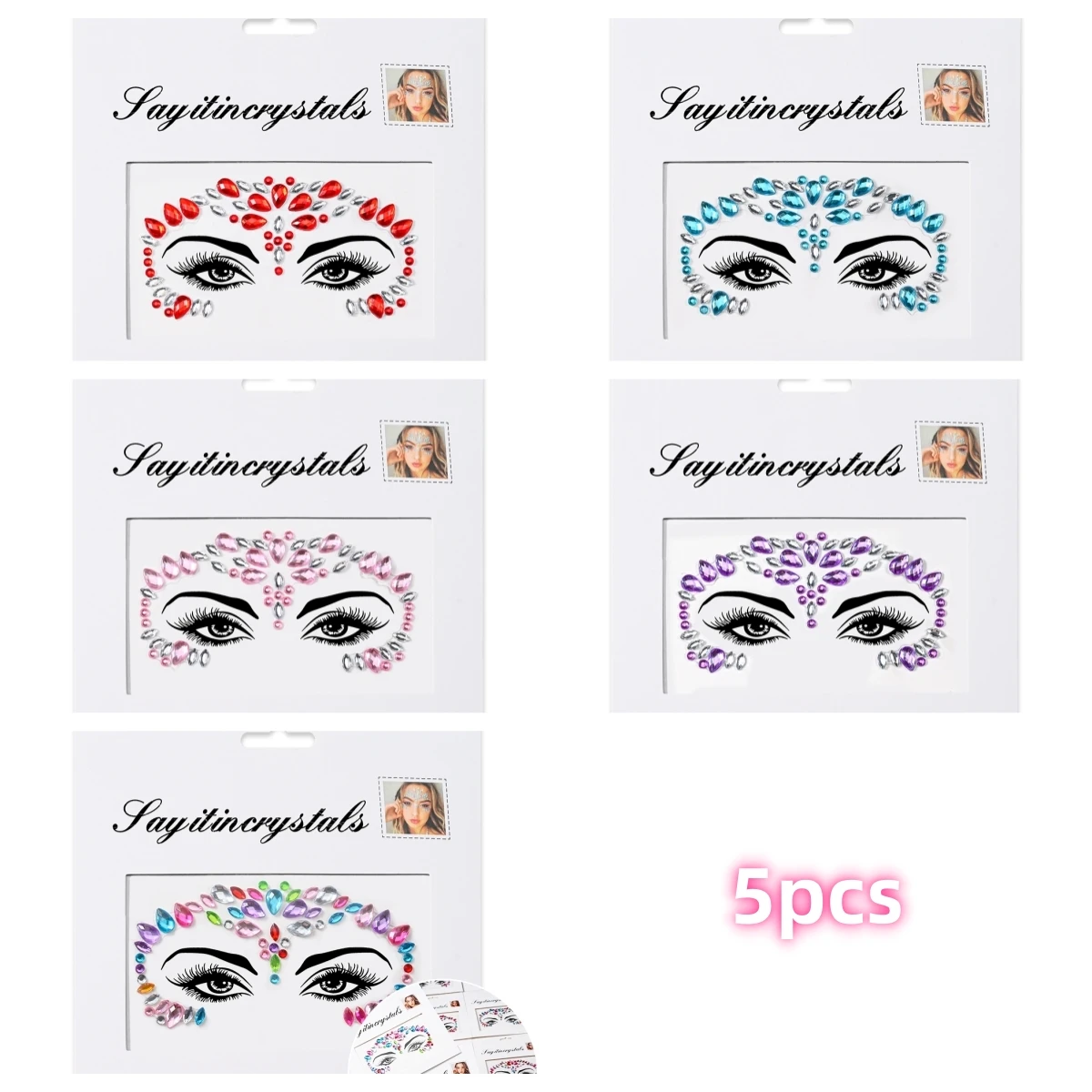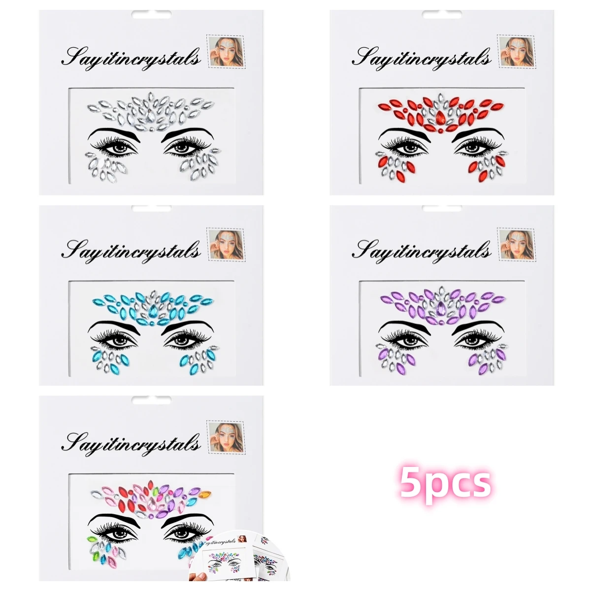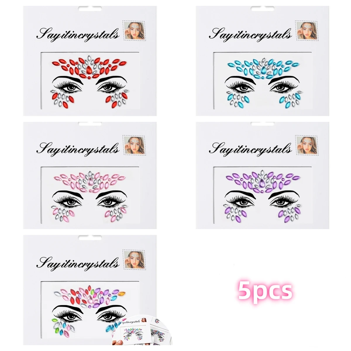 5 pièces bijoux de visage de sirène pierres précieuses strass yeux rave autocollant temporaire de corps autocollants de visage en cristal décorations pour fête de Festival *