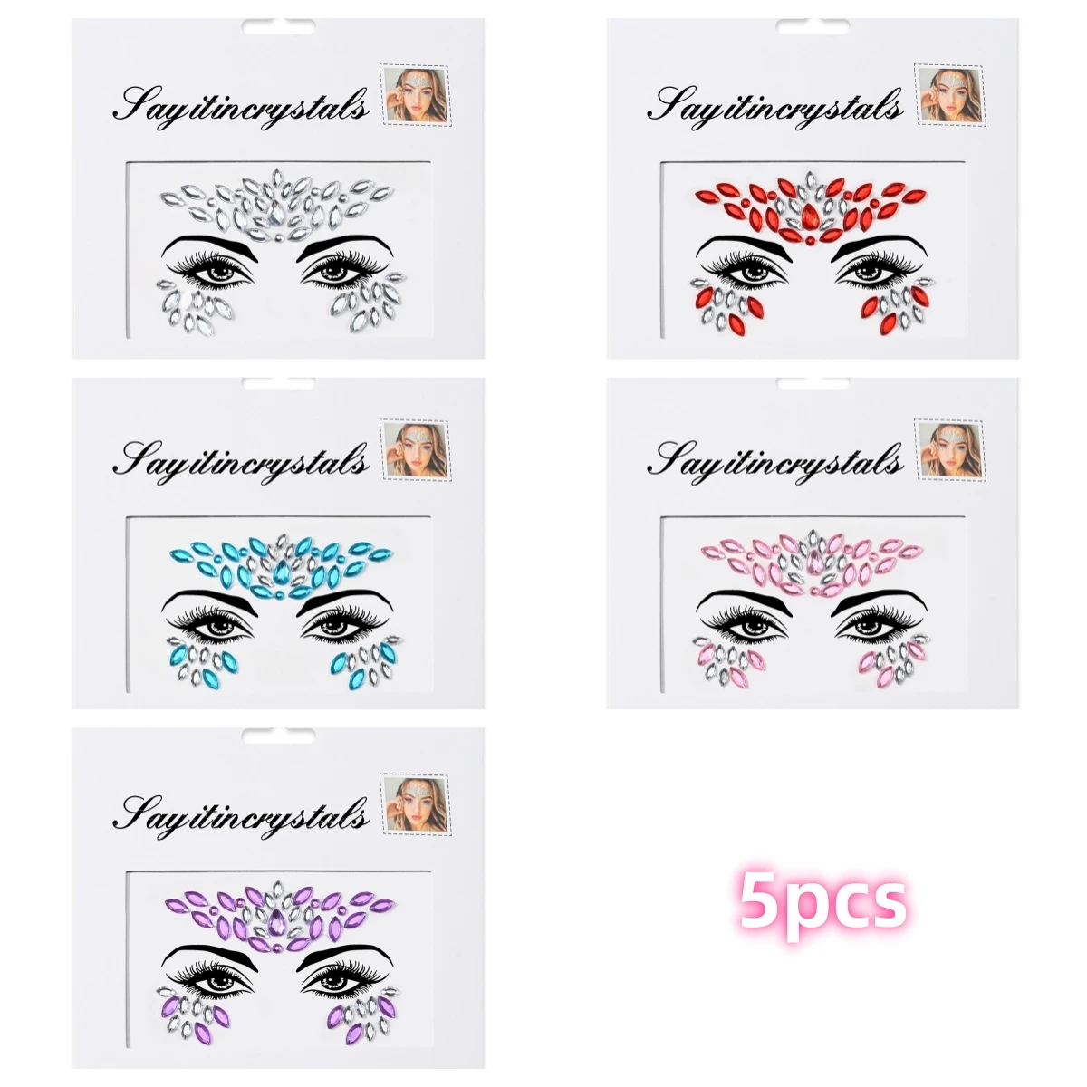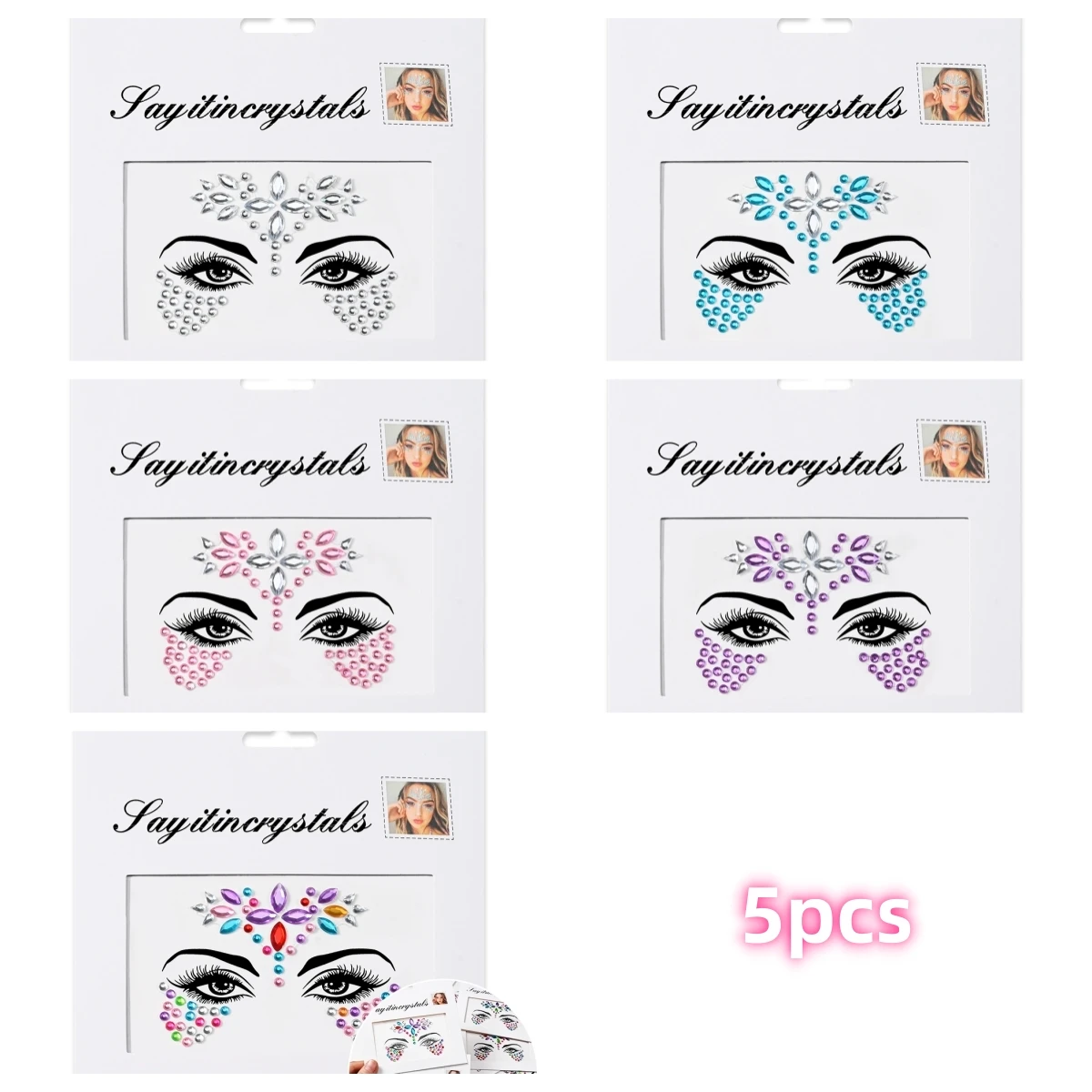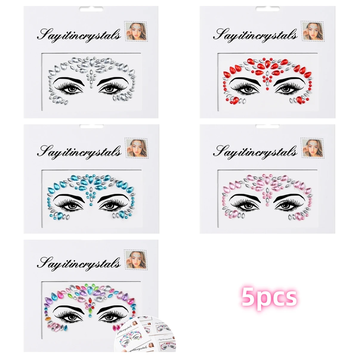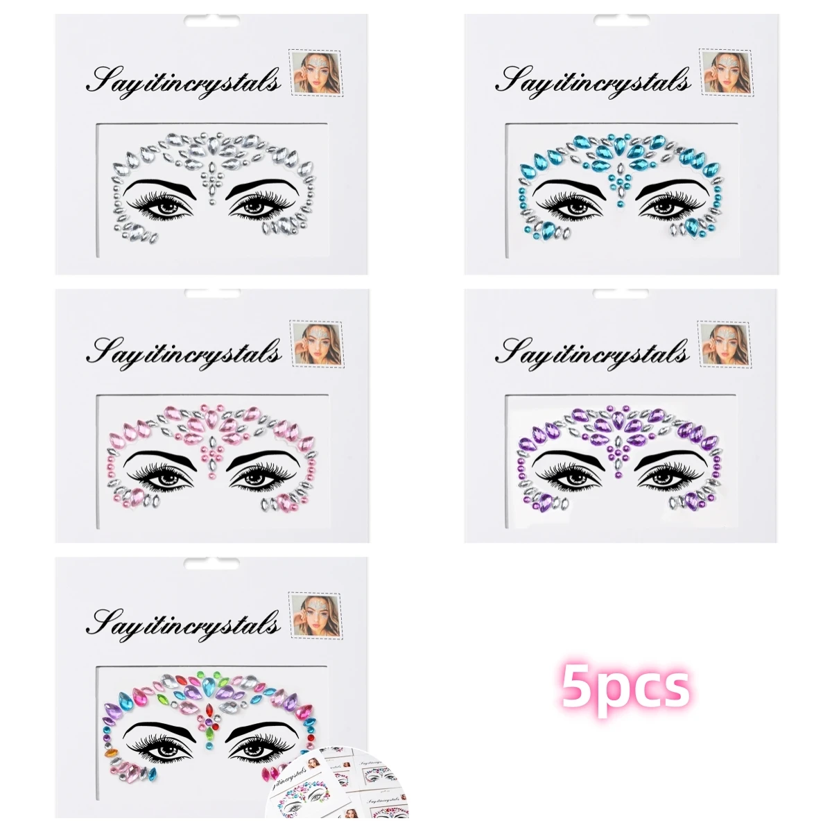 5 pièces bijoux de visage de sirène pierres précieuses strass yeux rave autocollant temporaire de corps autocollants de visage en cristal décorations pour fête de Festival *