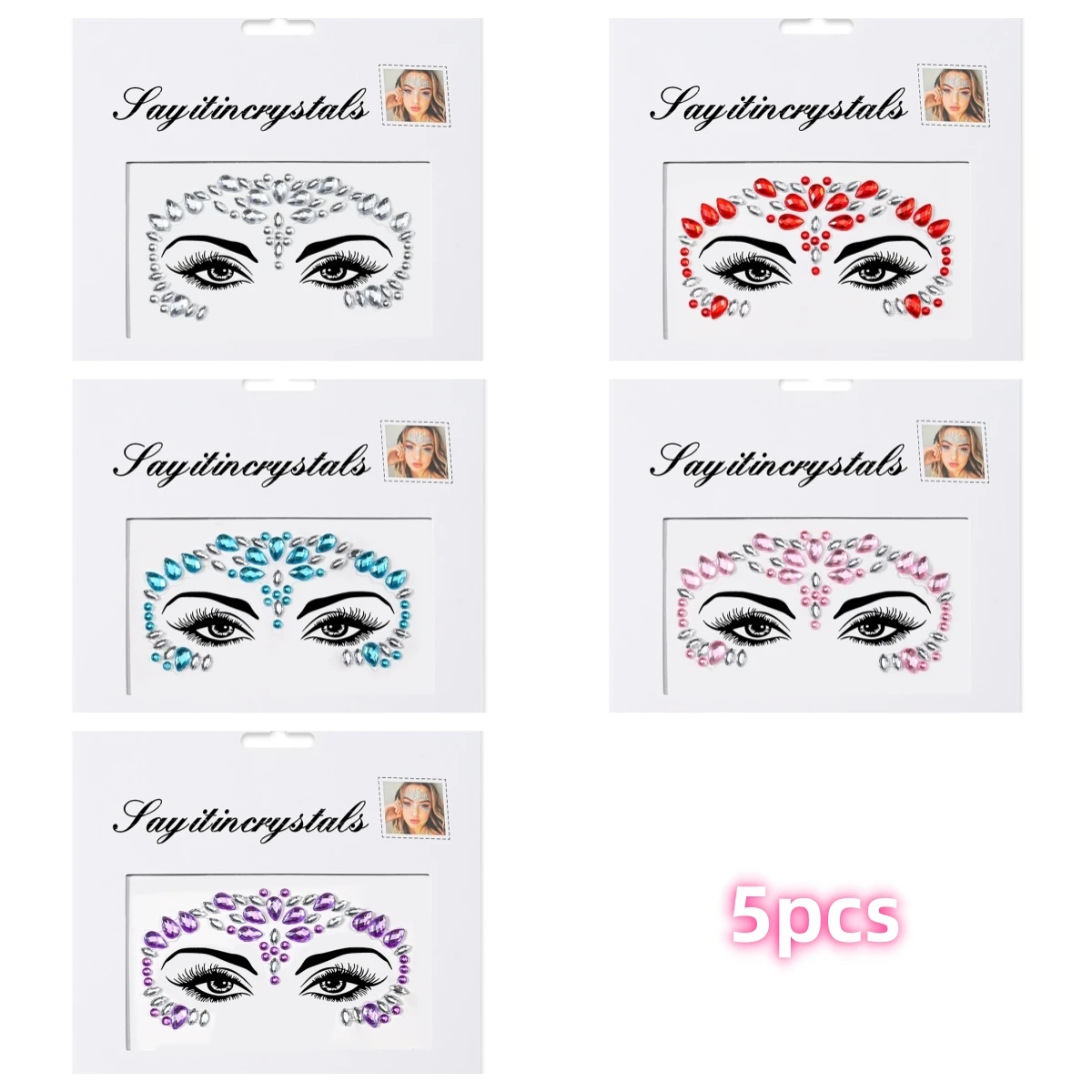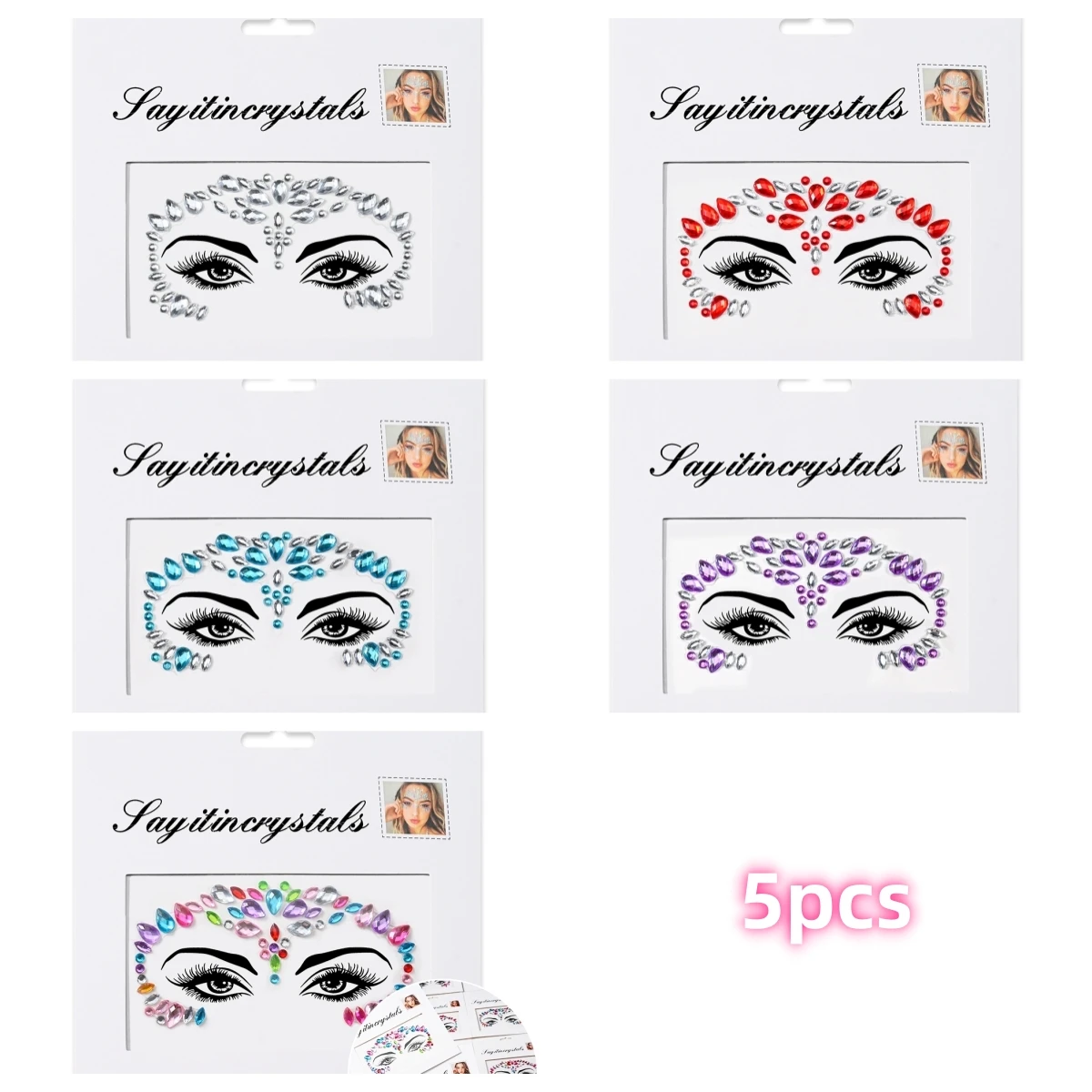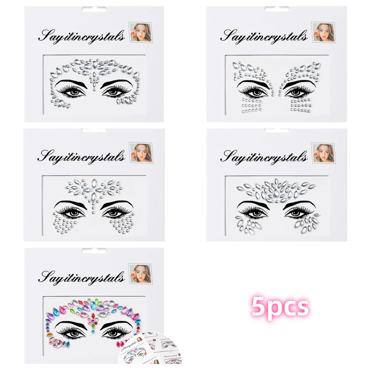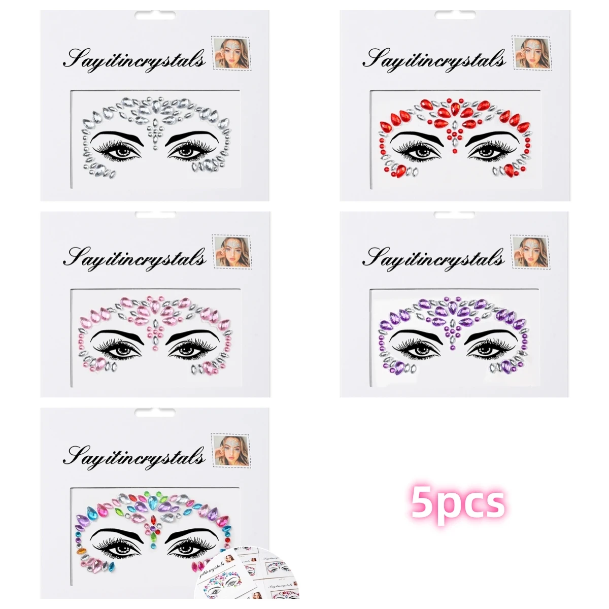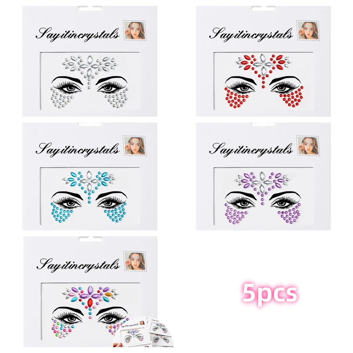 5 pièces bijoux de visage de sirène pierres précieuses strass yeux rave autocollant temporaire de corps autocollants de visage en cristal décorations pour fête de Festival *