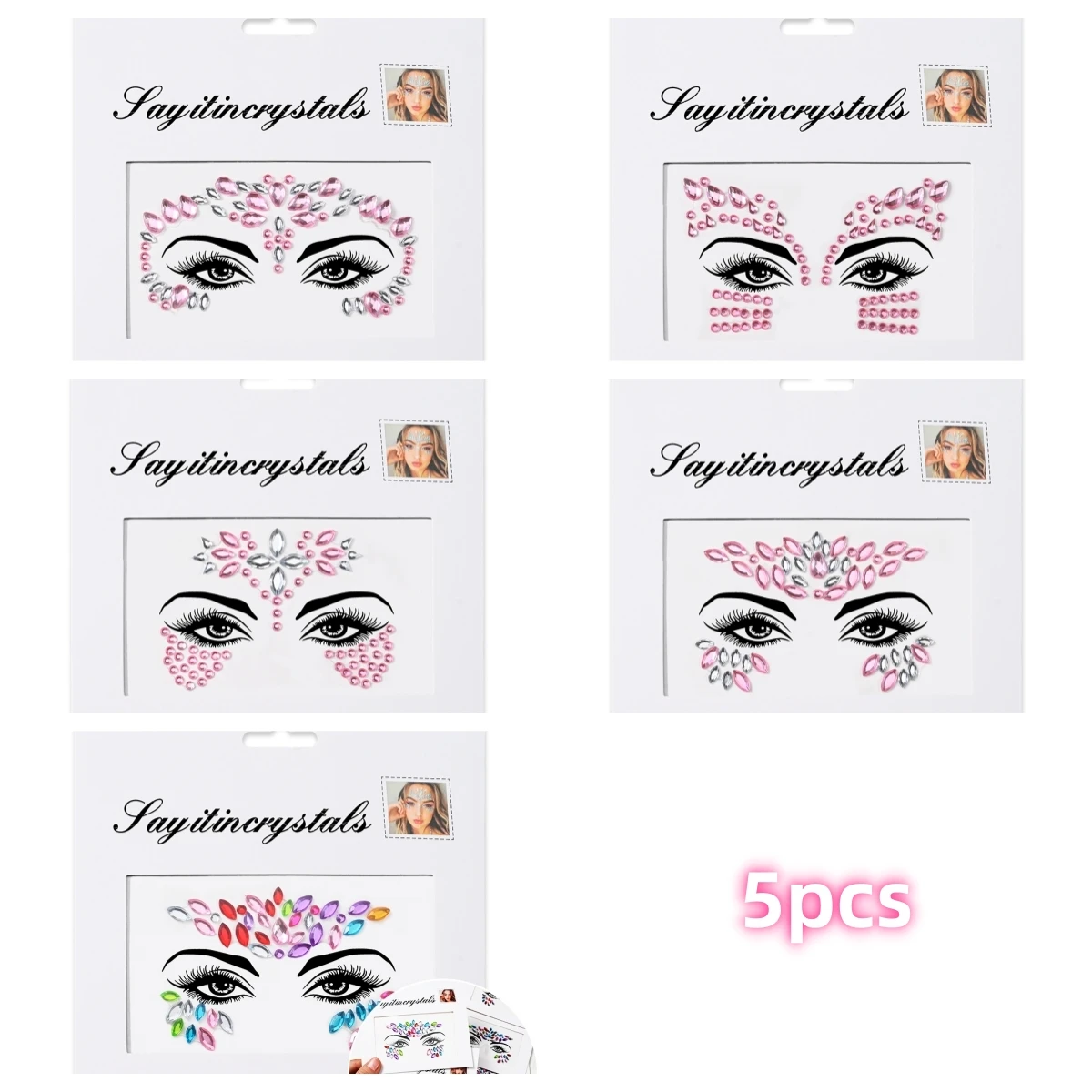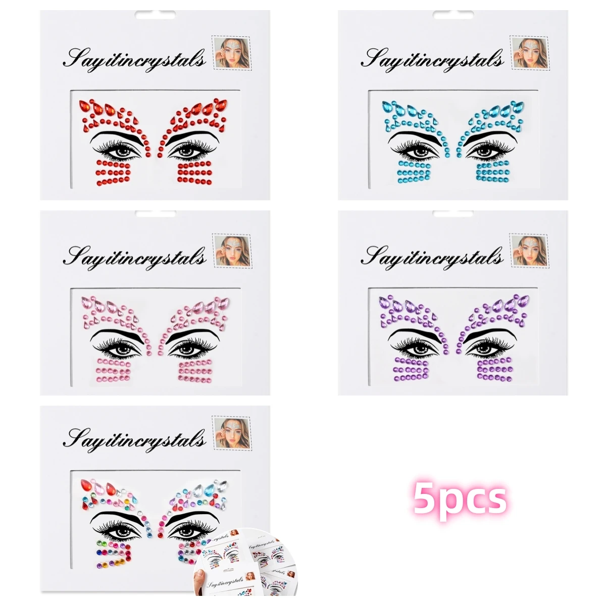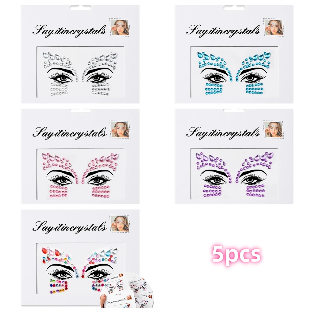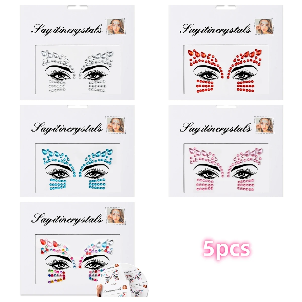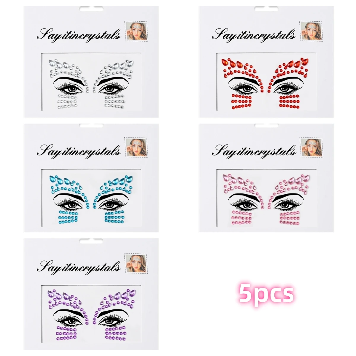 5 pièces bijoux de visage de sirène pierres précieuses strass yeux rave autocollant temporaire de corps autocollants de visage en cristal décorations pour fête de Festival *