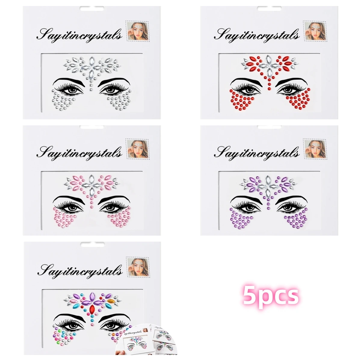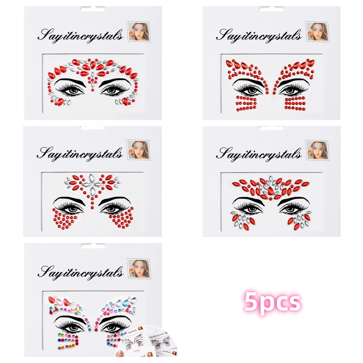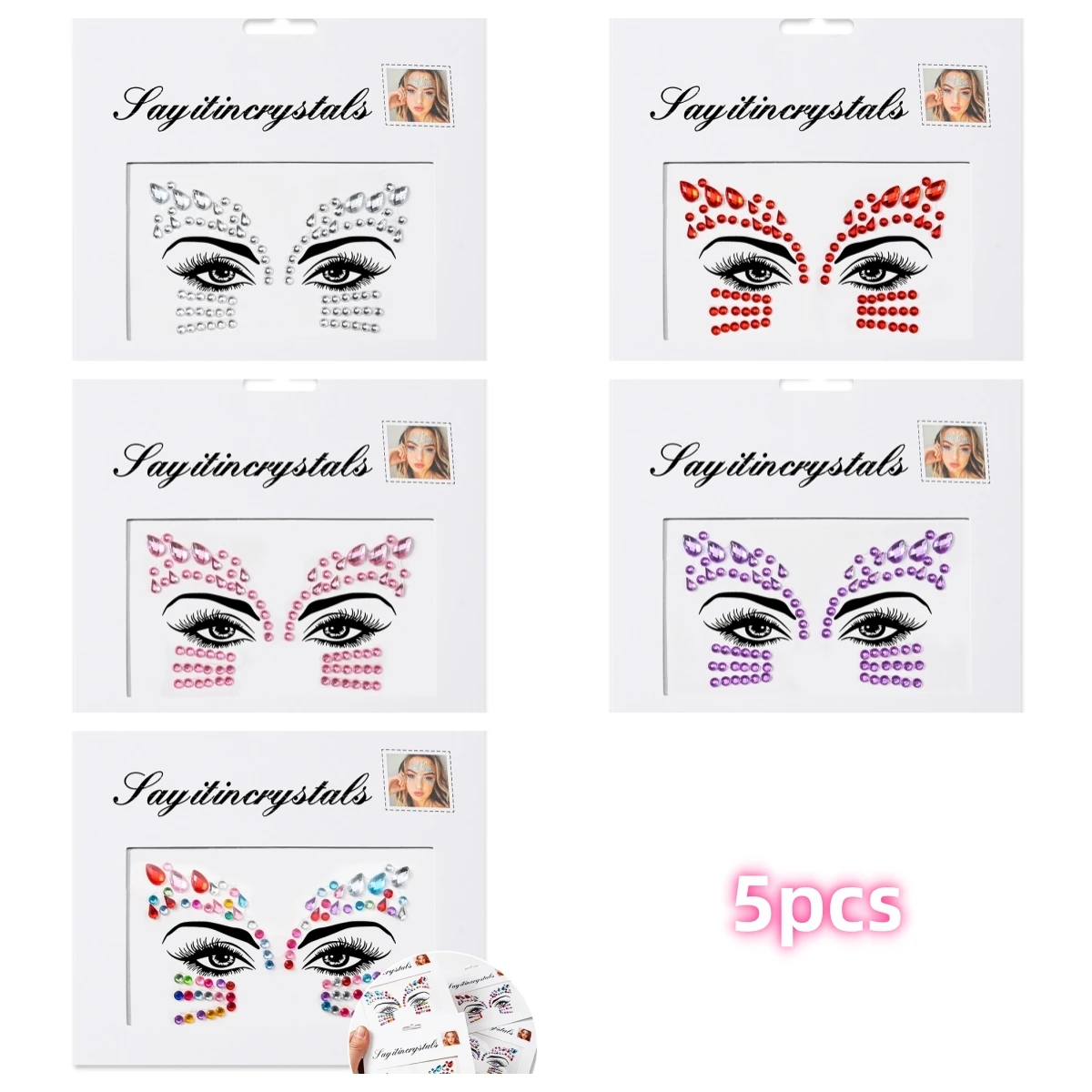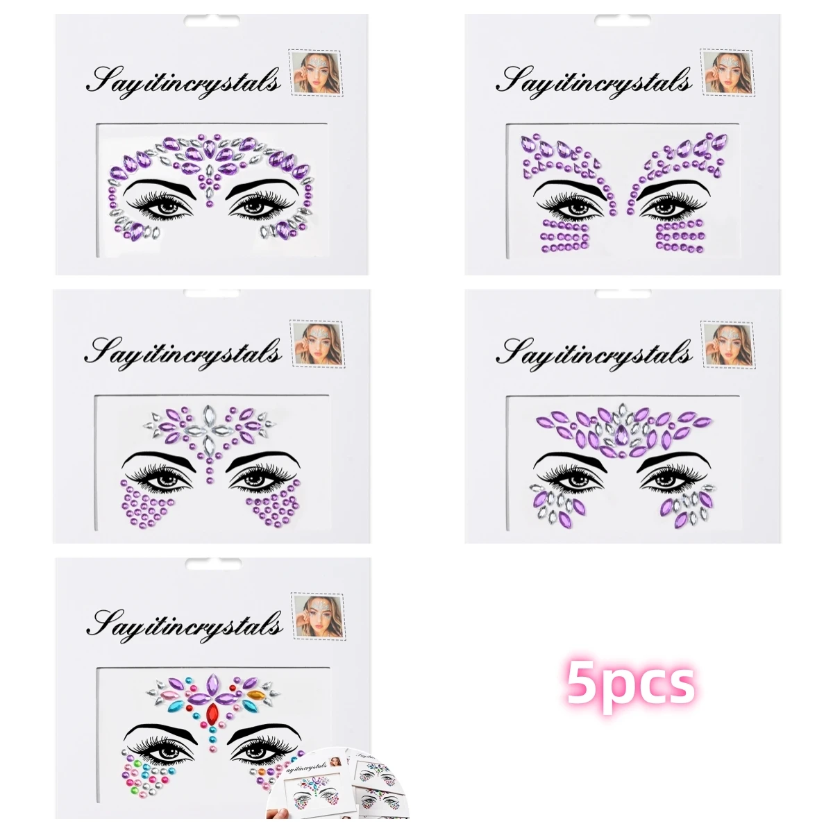 Facile à appliquer et à enlever : 5 feuilles de bijoux pour le visage sont préparées dans une feuille individuelle.Ces bijoux pour le visage de festival sont auto-adhésifs, de sorte que les cristaux du visage sont faciles à coller, il suffit de les décoller du papier support et de les coller selon les motifs.Plus besoin d'utiliser de colle supplémentaire.
