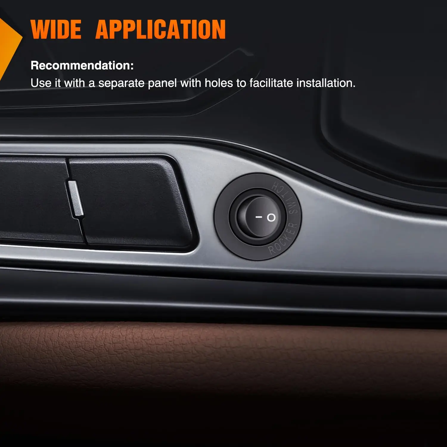 Large application : notre interrupteur peut être utilisé comme interrupteur pour divers équipements électriques supplémentaires, à l'intérieur et à l'extérieur de la voiture.Environnement AC ou DC.Il est largement utilisé pour contrôler les LED et les circuits sur les voitures, les camping-cars, les bateaux marins, les camions, les ménages, les machines à café, les équipements industriels et les équipements médicaux.Peut également les utiliser sur un distributeur d'eau, une machine en marche, une modification d'appareils électromobiles et autres appareils électroménagers