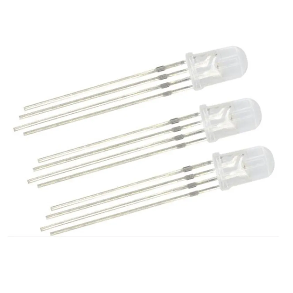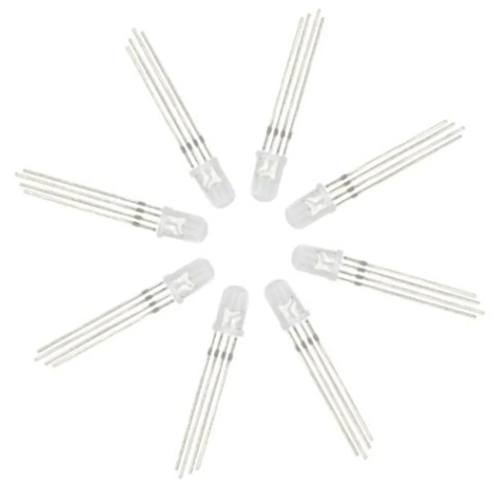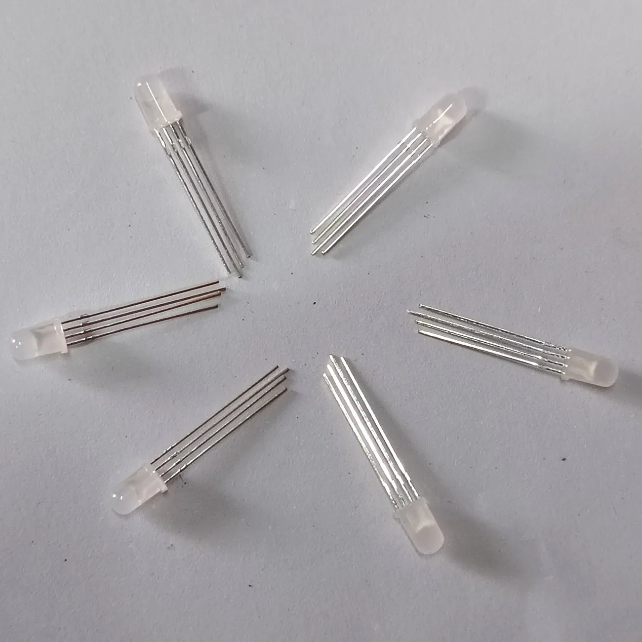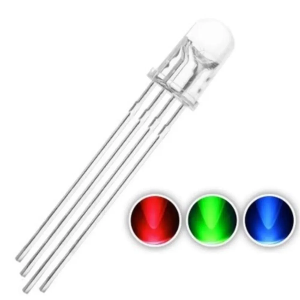 50 pièces 5MM haute luminosité polychrome LED Diode électroluminescente quatre broches rouge vert bleu trois couleurs RGB sept couleurs lumière