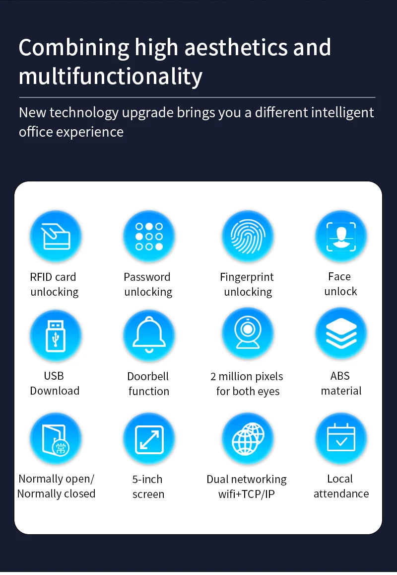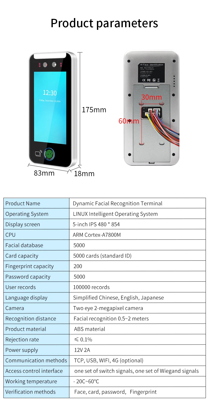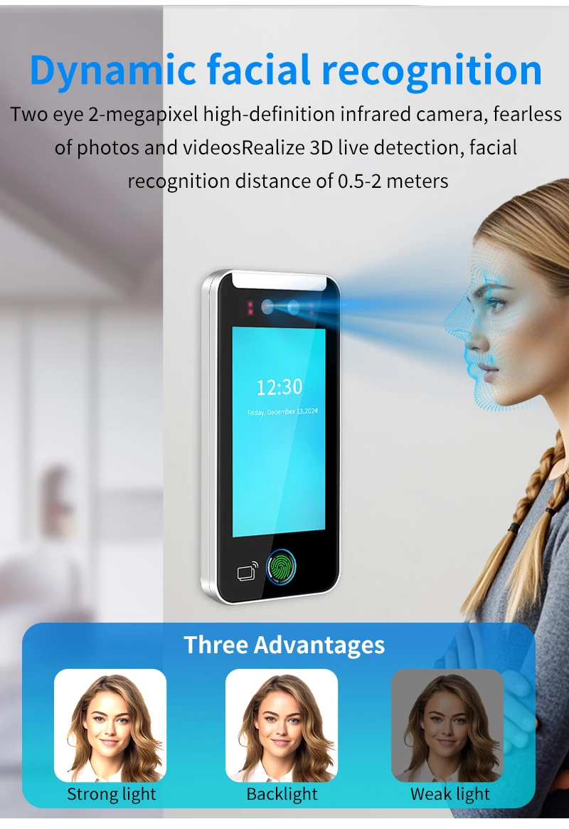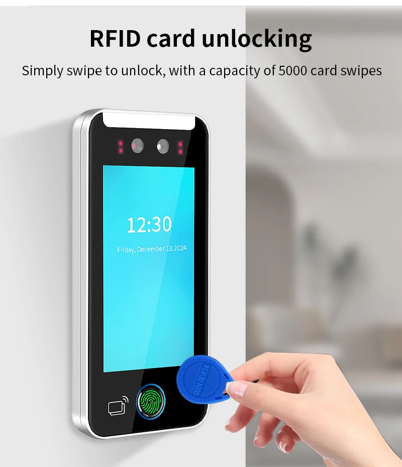 5 pouces Tuya App Wifi dynamique visage présence contrôle d'accès biométrique empreinte digitale reconnaissance faciale système de contrôle de serrure de porte