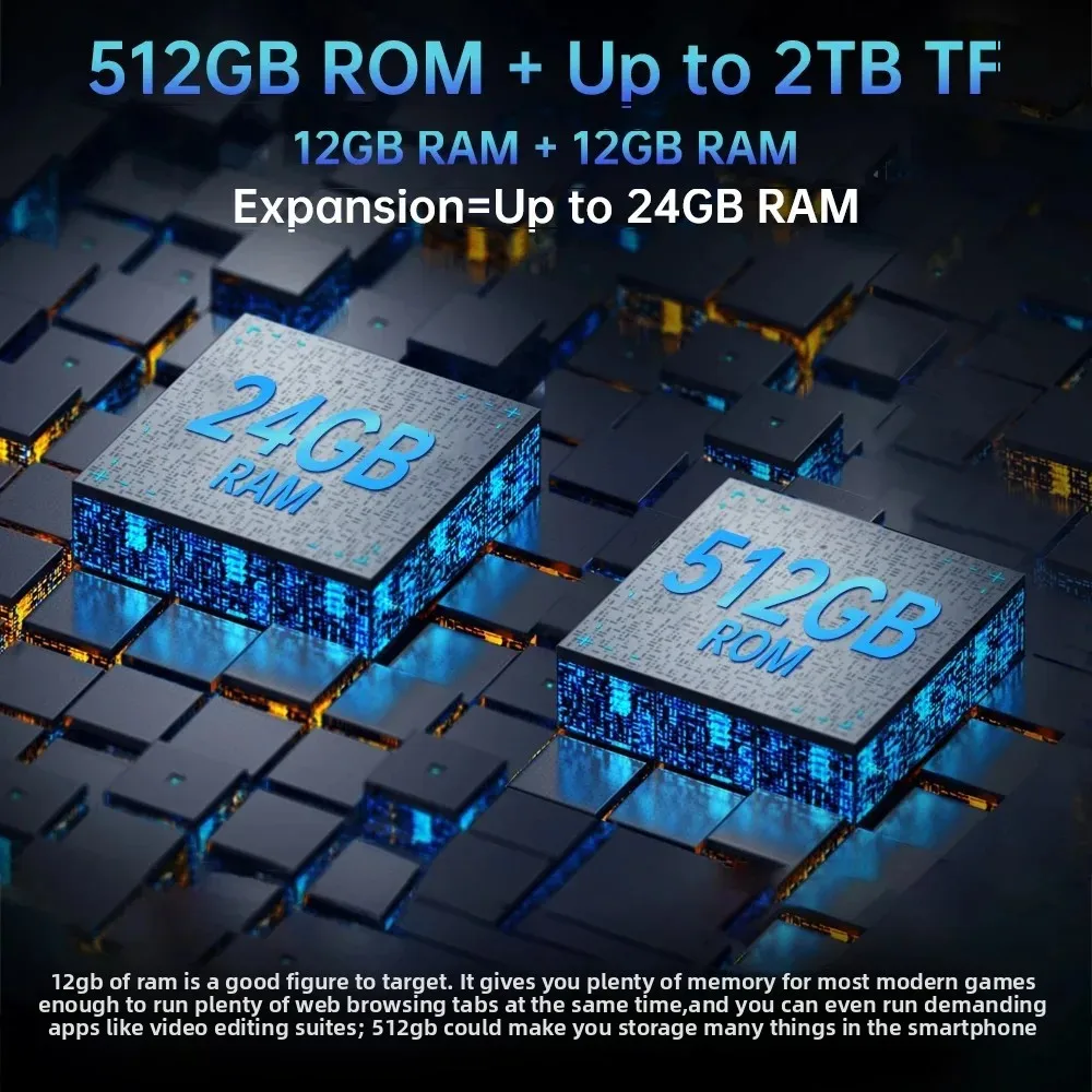 Jusqu'à 24 Go de RAM (12 + 12 Go virtuels), 512 Go de ROM