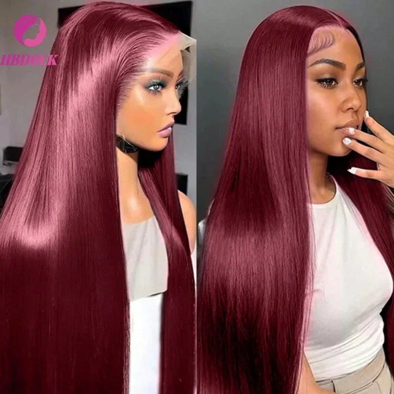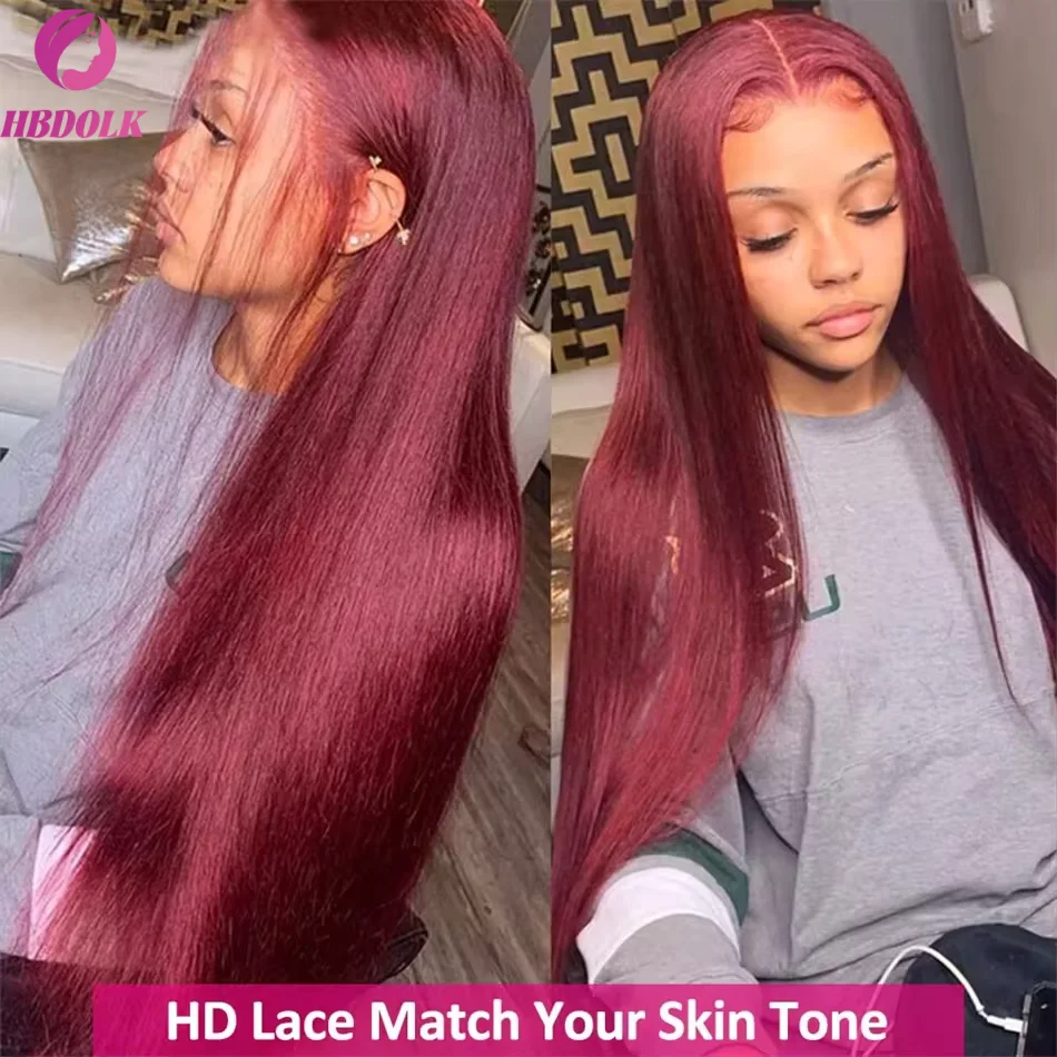 99J bordeaux 13x4 HD dentelle 30 34 pouces perruques avant brésiliennes perruque de cheveux humains 200% couleur rouge droite 13X4 dentelle frontale perruque pour les femmes