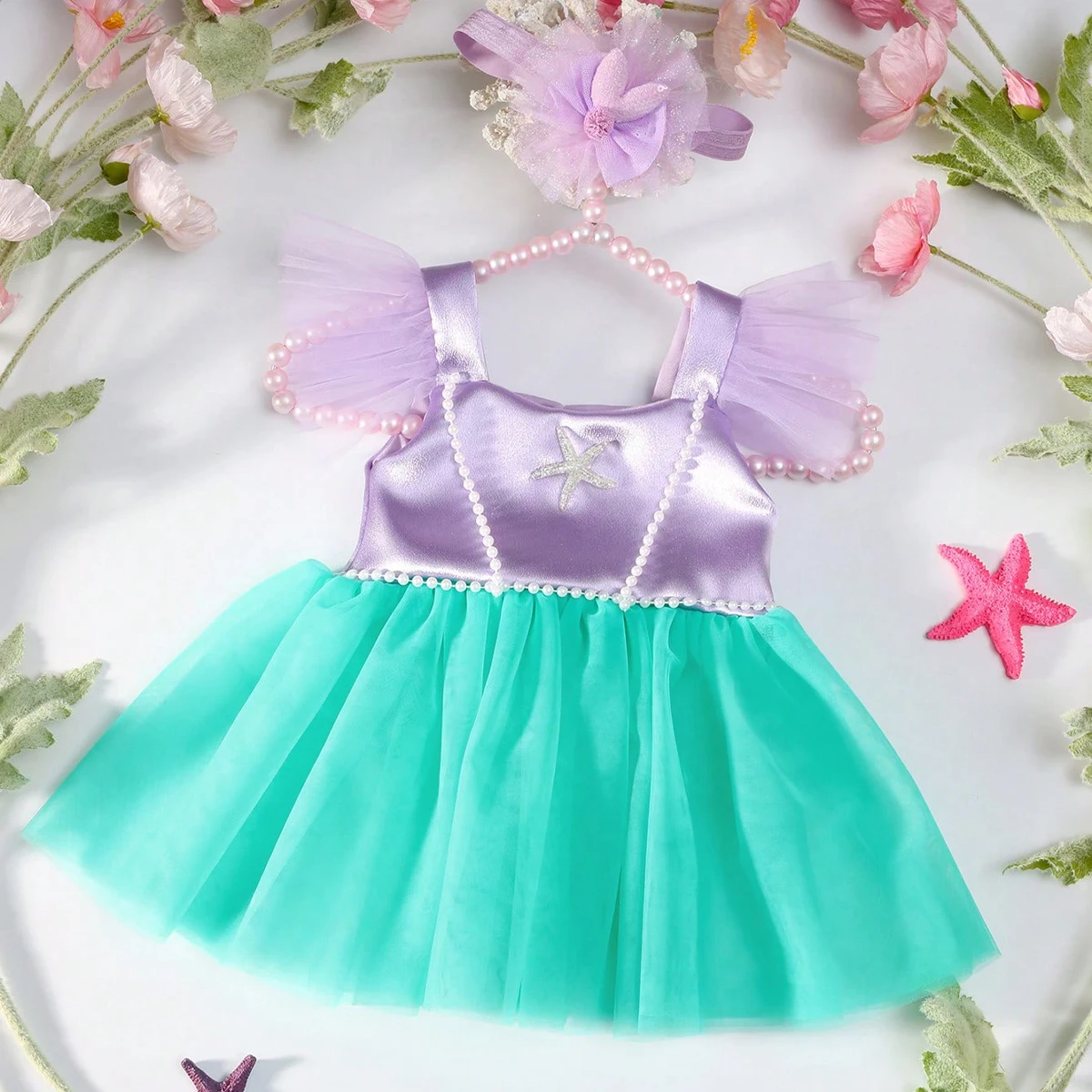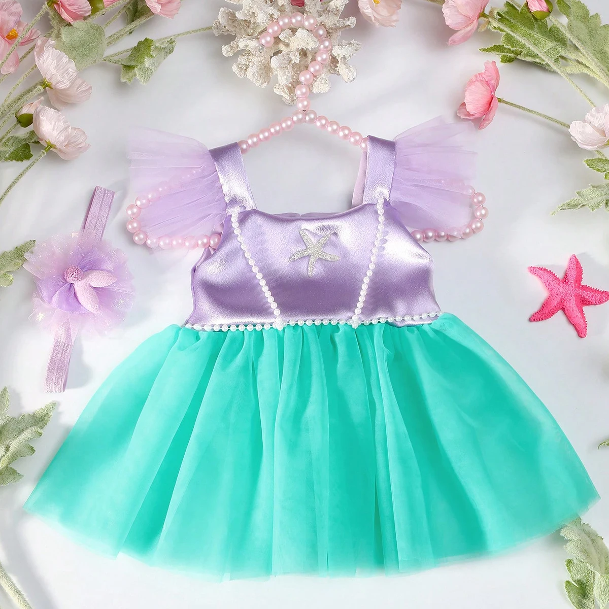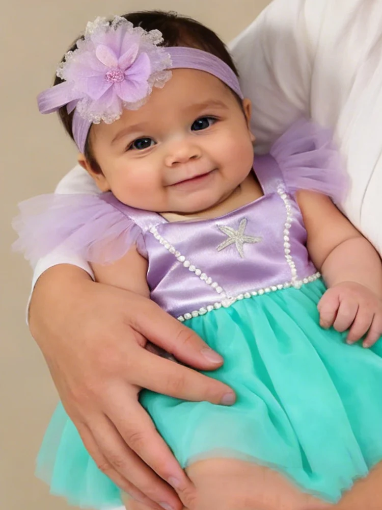 Accessoires de photographie pour nouveau-né, robe violette pour bébé fille, Style perle étoile de mer, avec bandeau, tenues de séance Photo pour nourrissons