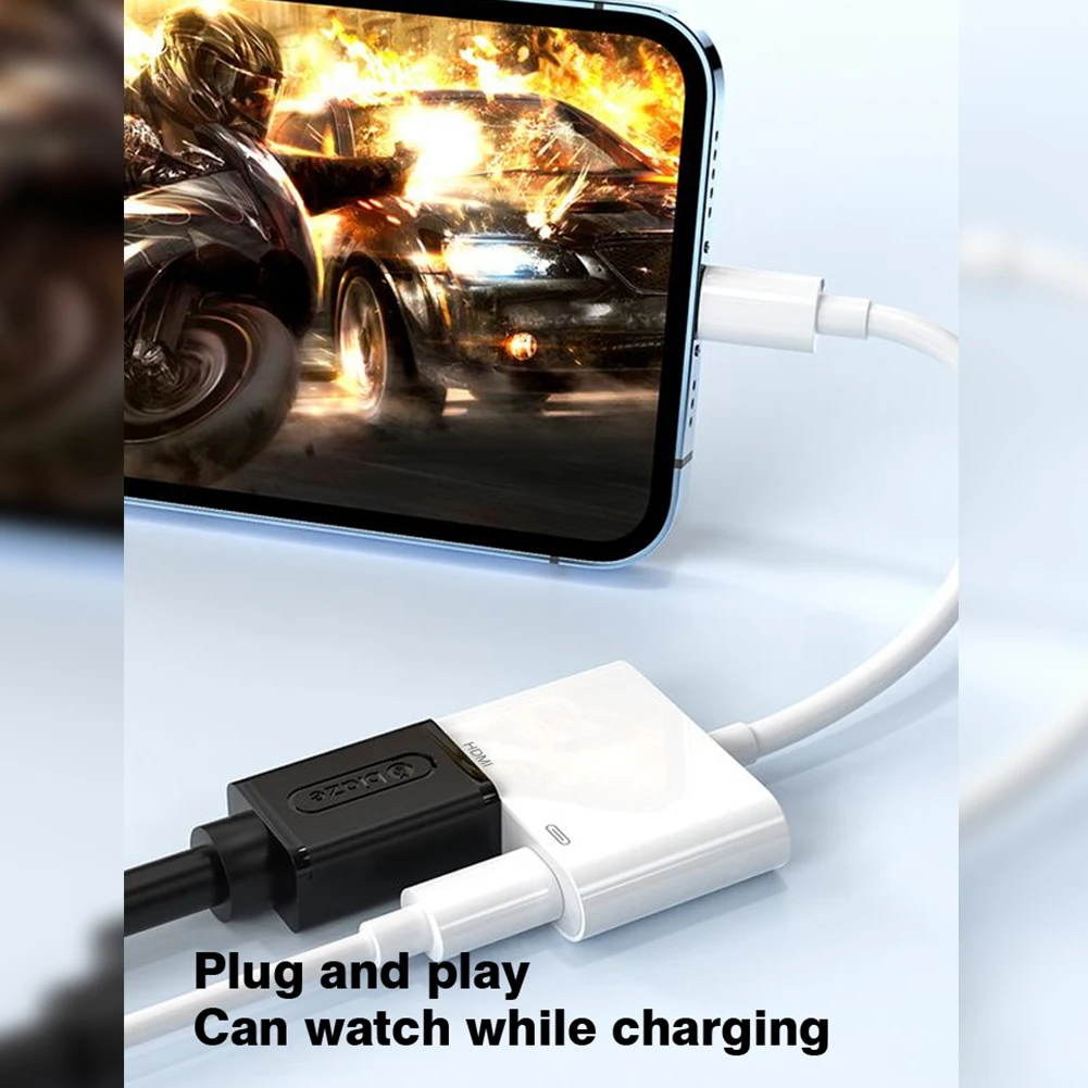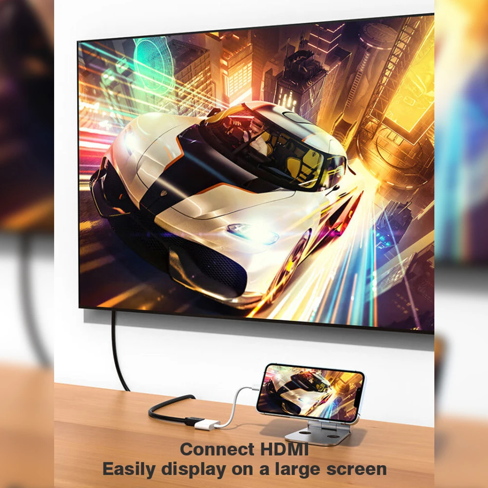 [Conception portable] : ce câble adaptateur est portable, petit et portable, facile à mettre dans votre sac/poche.Vous pouvez facilement télécharger et refléter le contenu affiché sur votre appareil, petit écran vers grand écran, cet adaptateur vous permet de refléter l'écran de votre téléphone, Pad sur votre téléviseur, téléviseur HD, moniteur compatible HDMI.